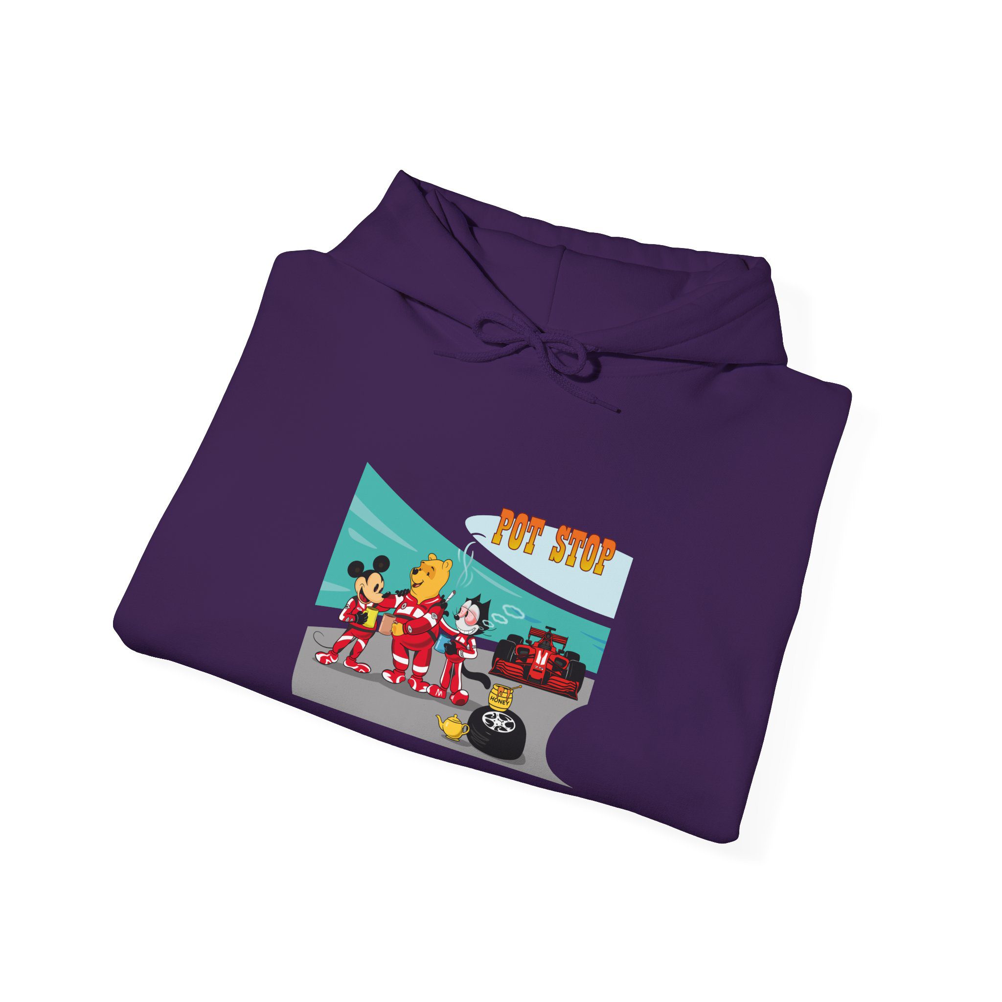 Rev up your engines — and your tea time — with this playful Pot-Stop Pause with Felix, Mickey and Winnie Hoodie. Starring Winnie the Pooh, Mickey Mouse, and Felix the Cat in racing suits, taking a delightfully unorthodox break, this design fuses Formula 1 energy with classic cartoon charm. Swapping tires for teapots and honey jars, the trio proves that even high-speed heroes need a cozy pause. Ideal for motorsport fans, animation enthusiasts, and anyone who believes the best pit stops include laughter and a warm drink.