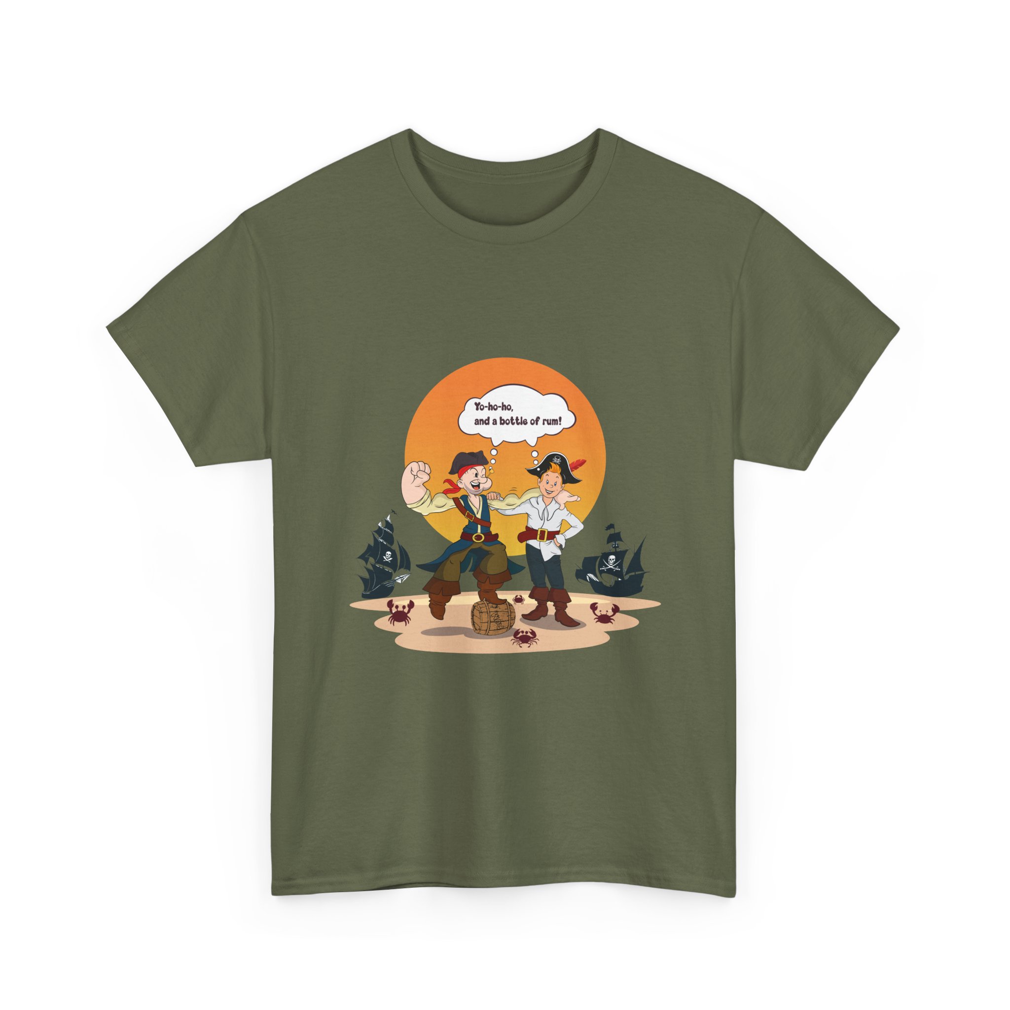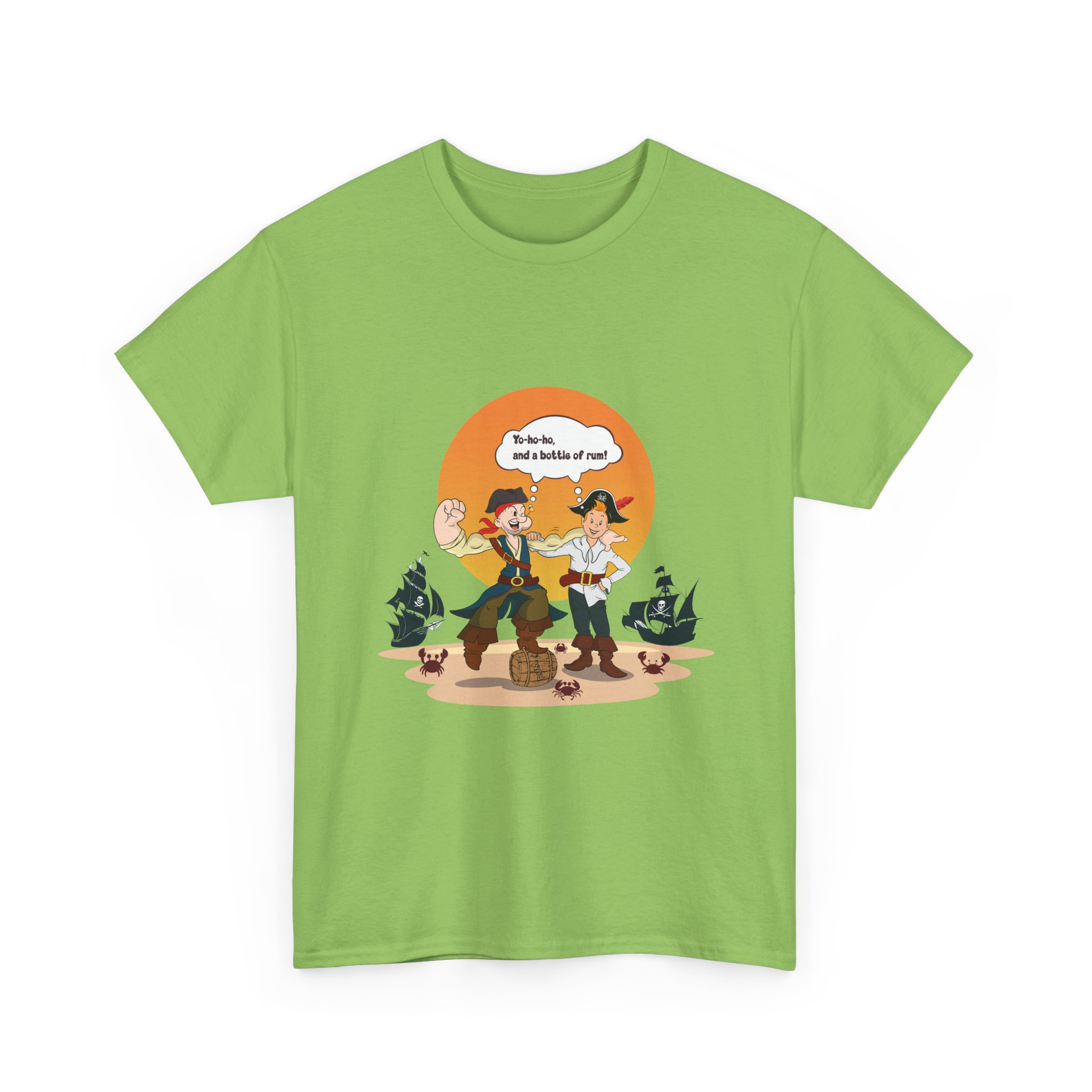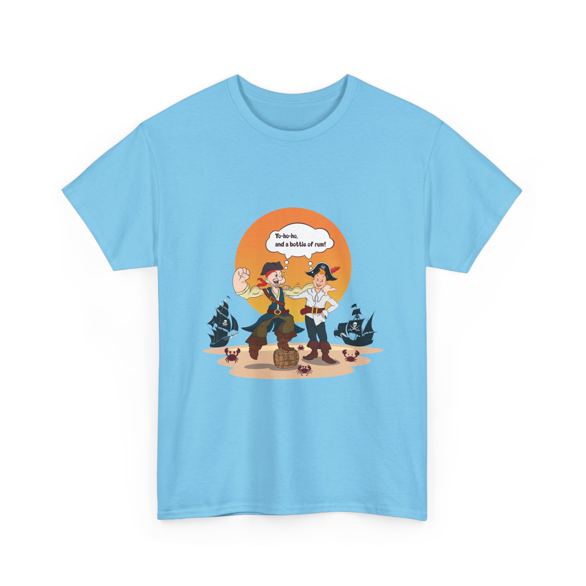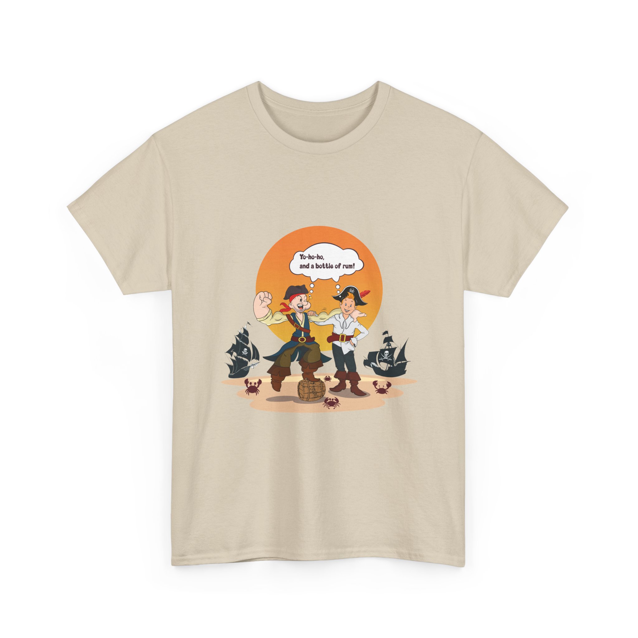 Set sail for adventure with this Popeye and Tintin: Sea Rogues T-shirt — the ultimate crossover of classic heroes. Surrounded by rum barrels and cheeky crabs, the duo brings old-school seafaring spirit and a splash of mischief to life. A perfect mix of nostalgia, humor, and maritime mayhem for fans of both sailors and storytellers.