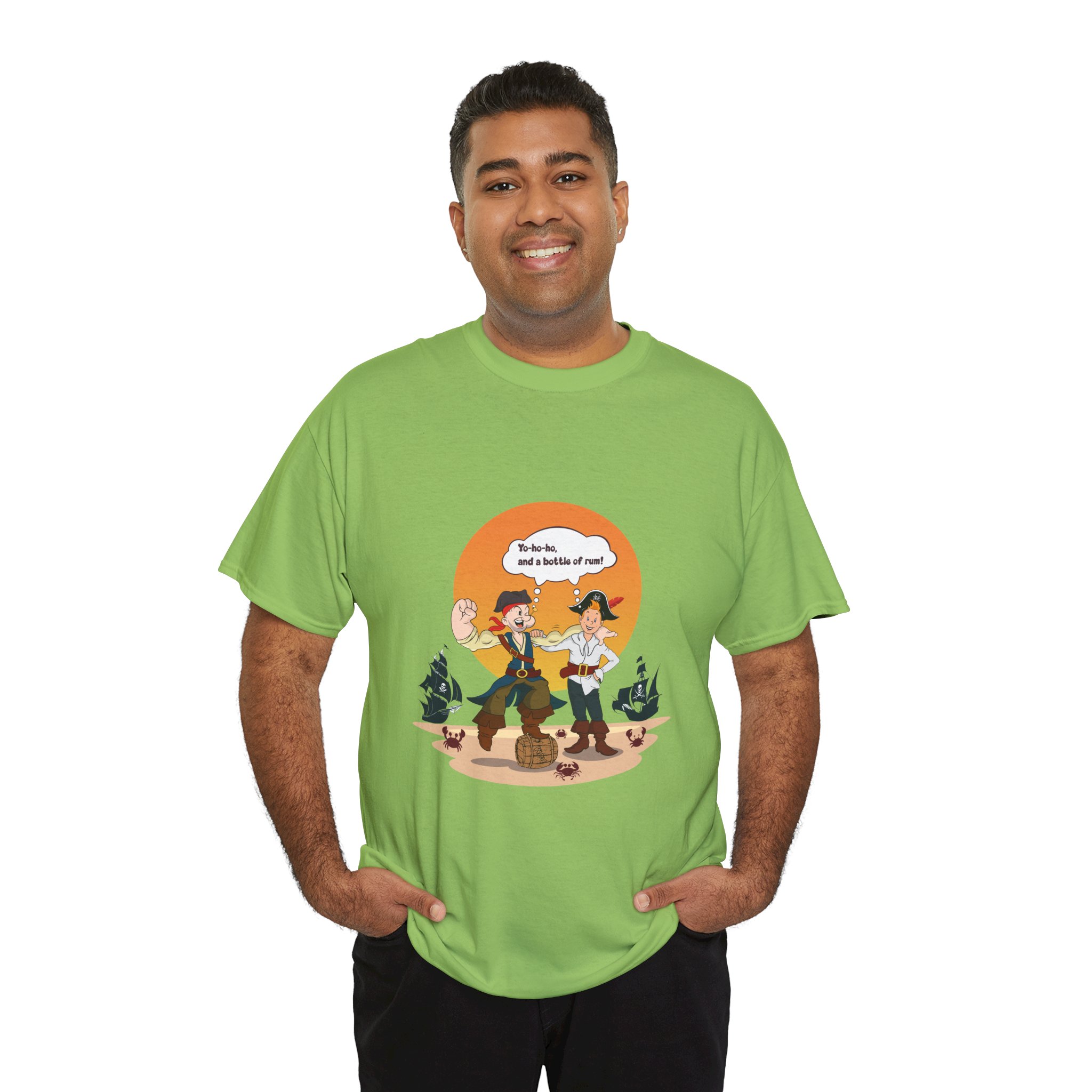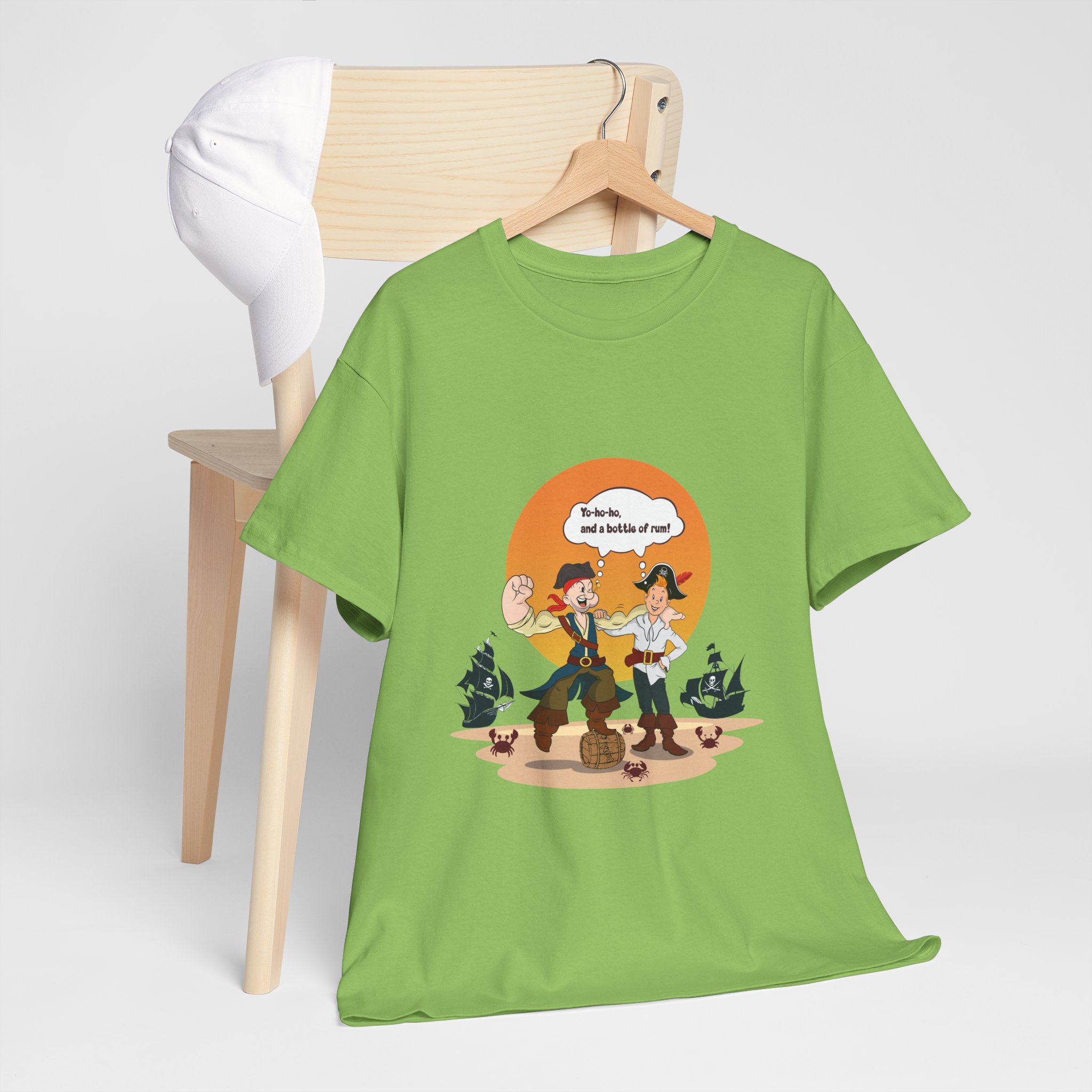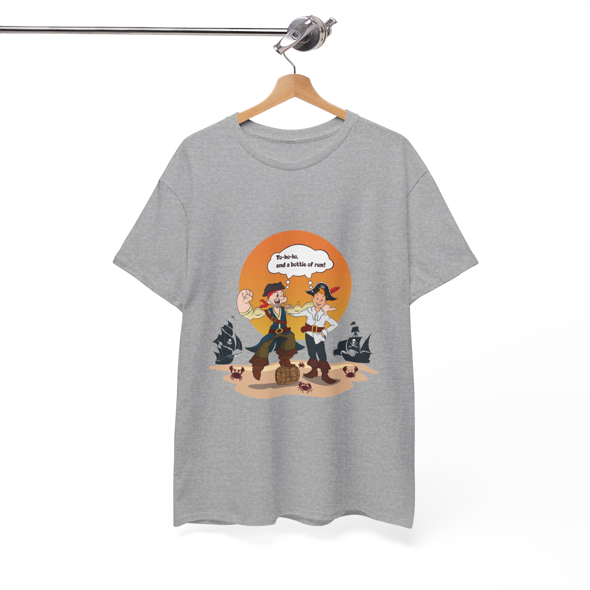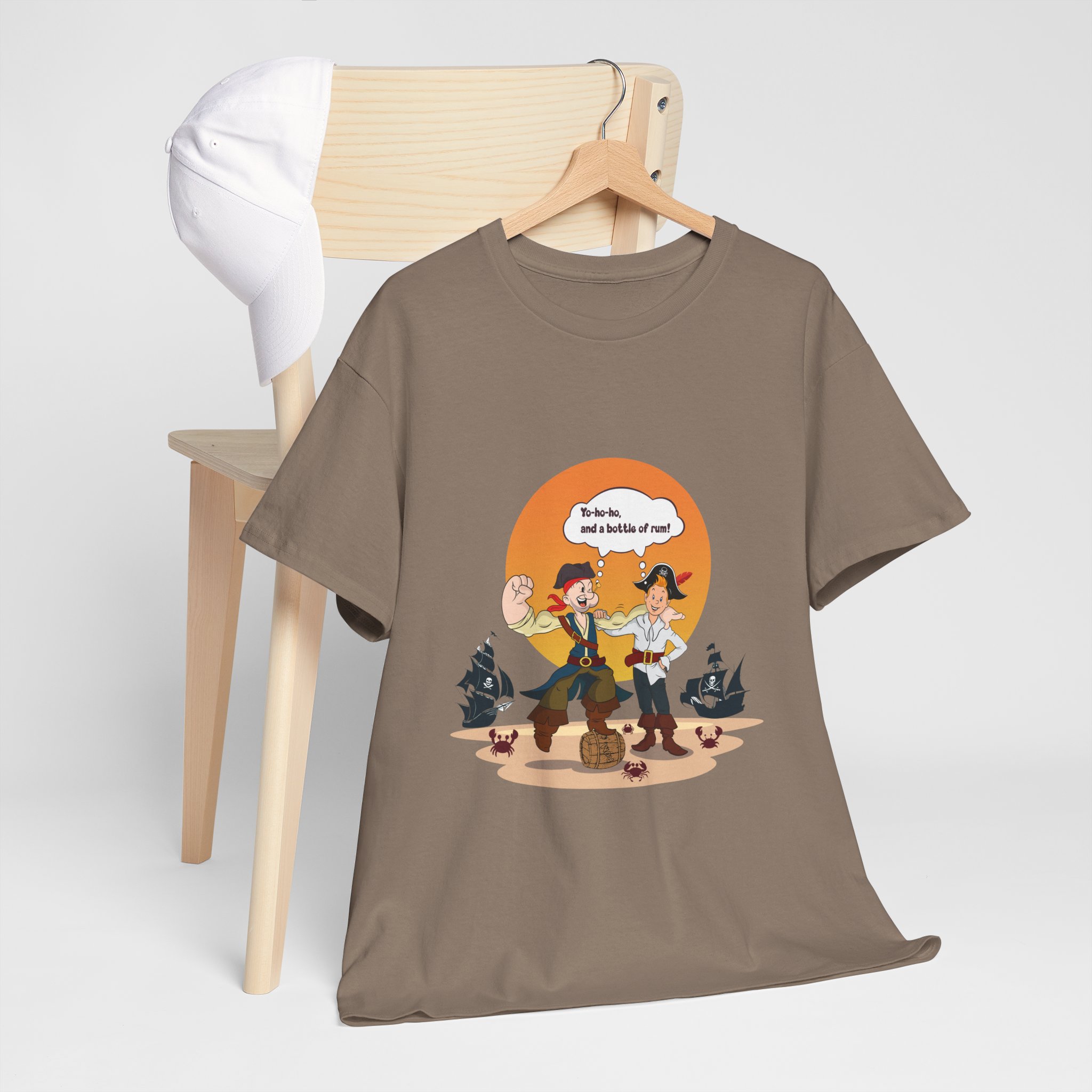 Set sail for adventure with this Popeye and Tintin: Sea Rogues T-shirt — the ultimate crossover of classic heroes. Surrounded by rum barrels and cheeky crabs, the duo brings old-school seafaring spirit and a splash of mischief to life. A perfect mix of nostalgia, humor, and maritime mayhem for fans of both sailors and storytellers.