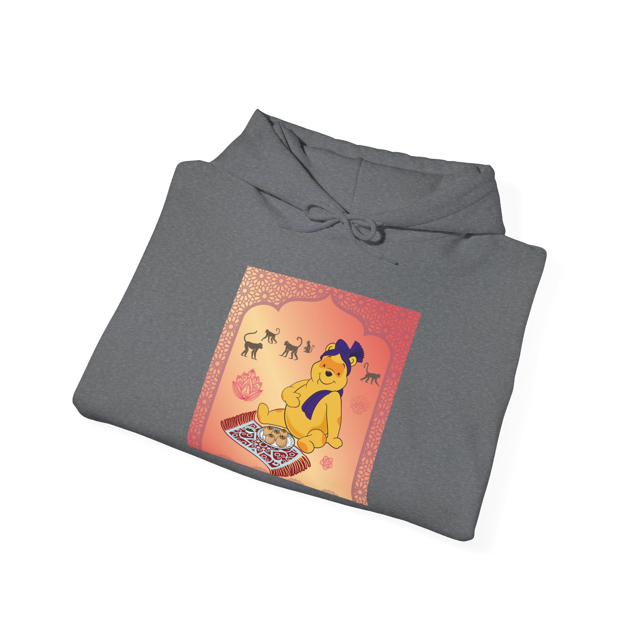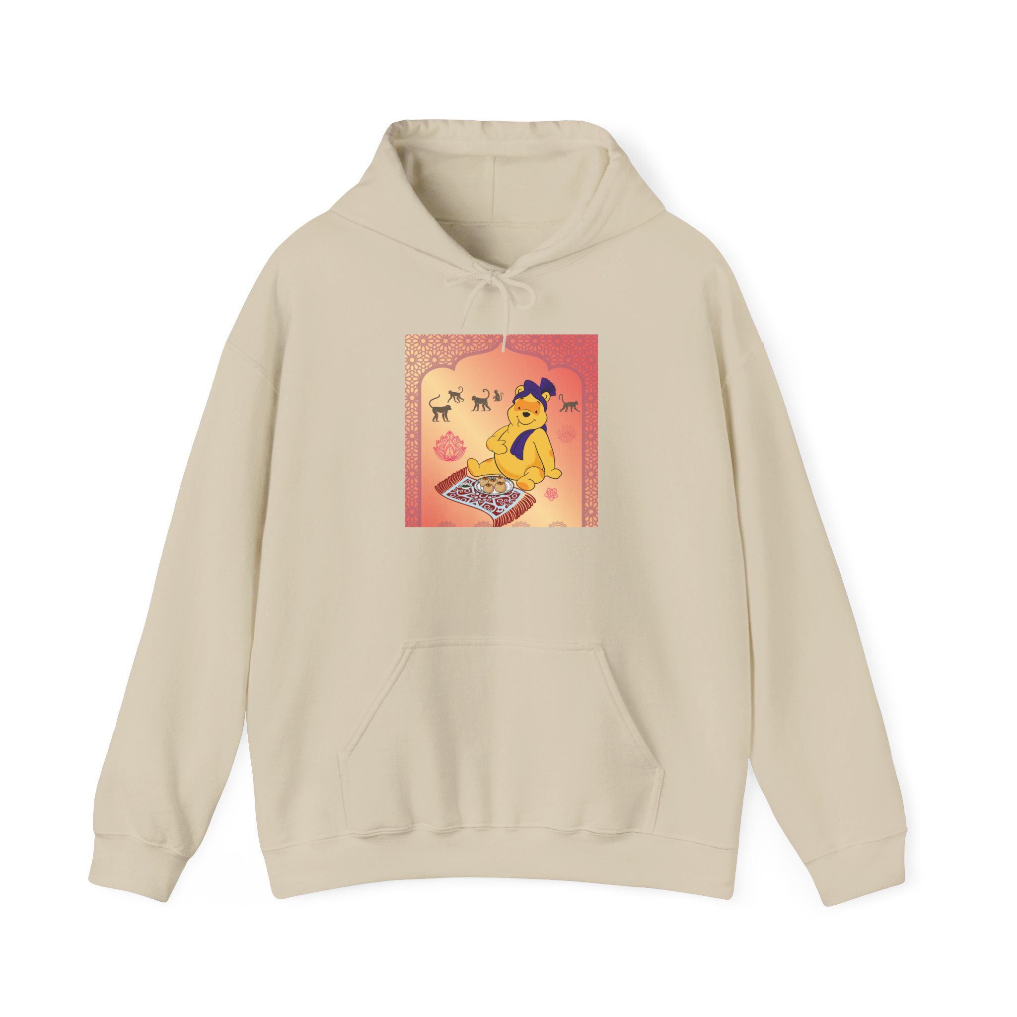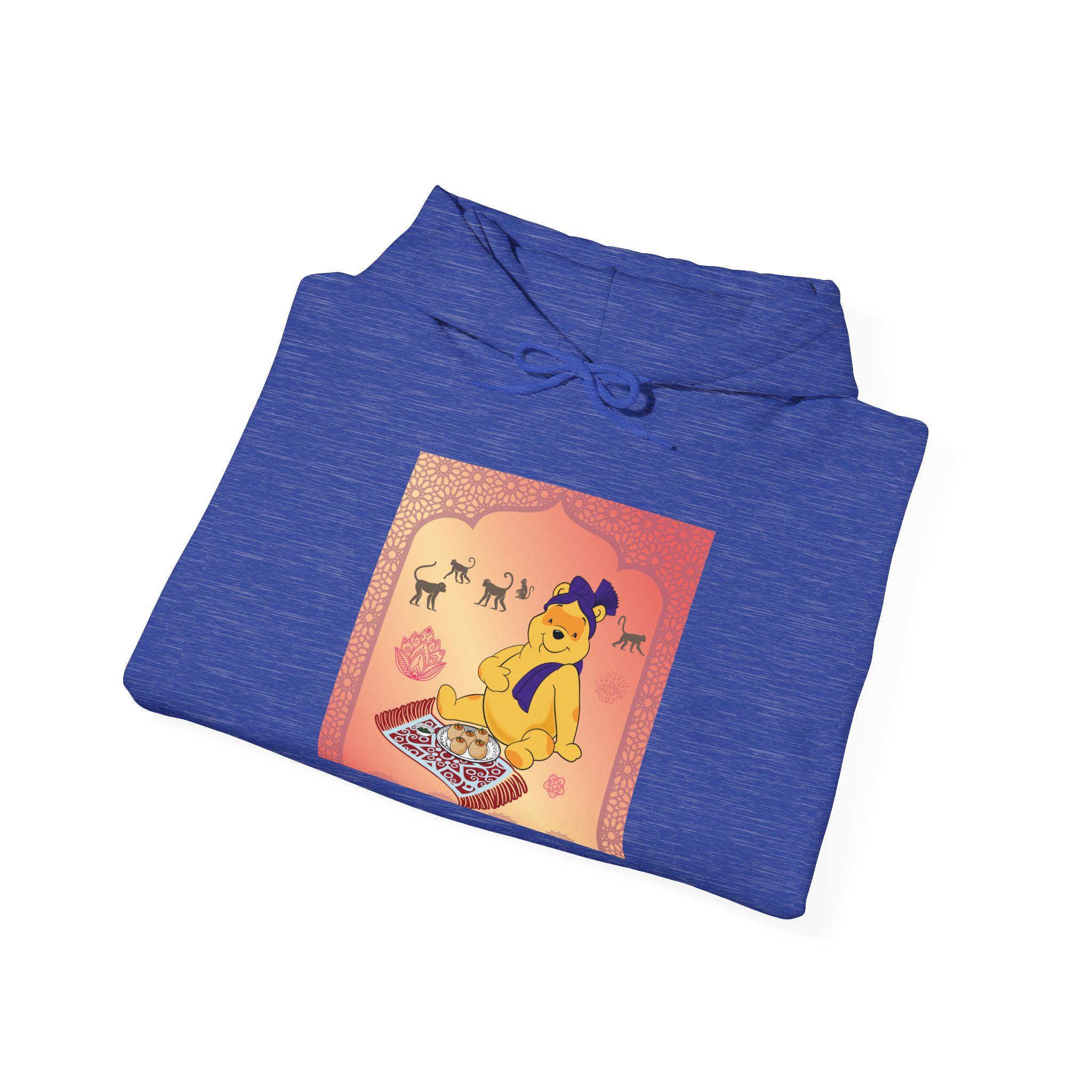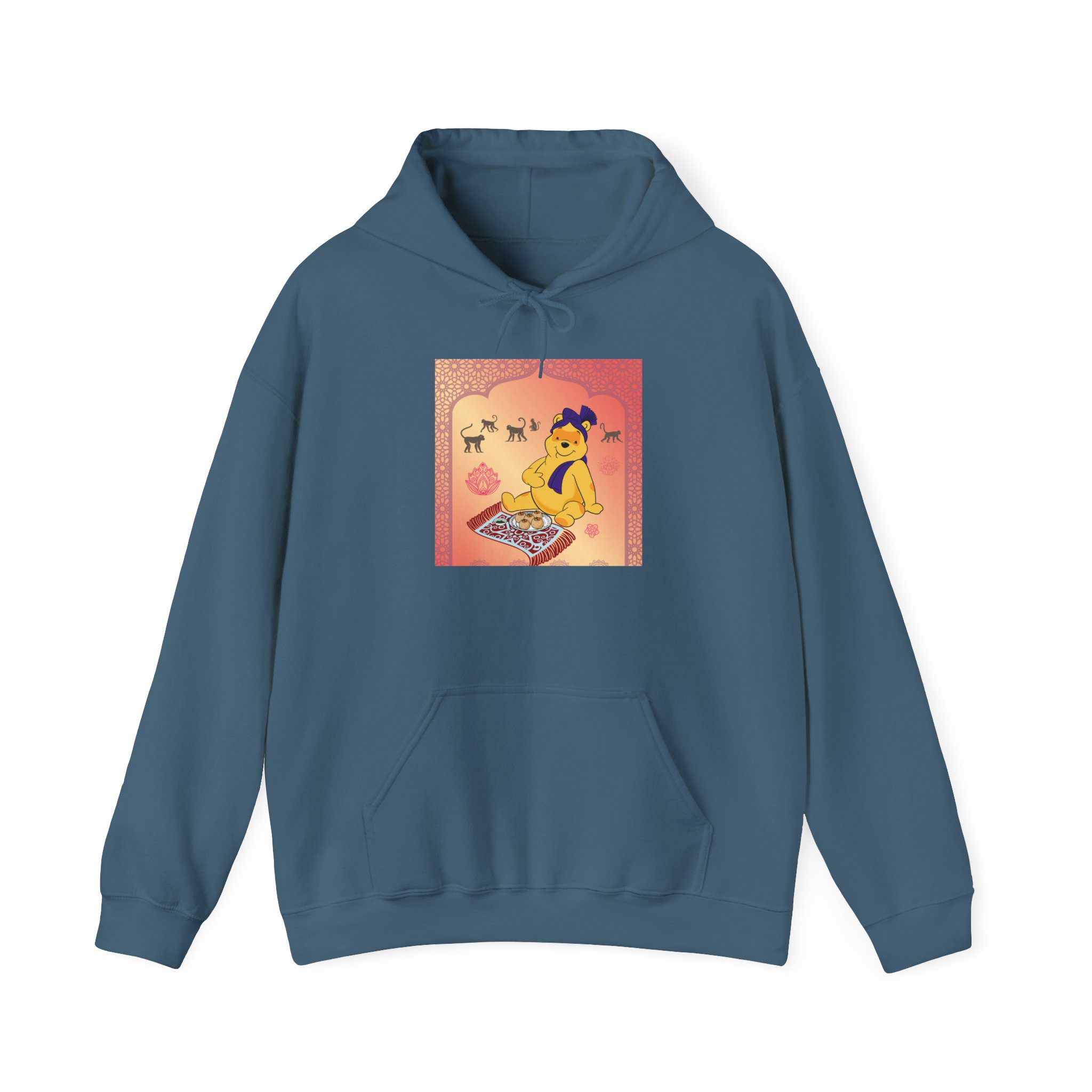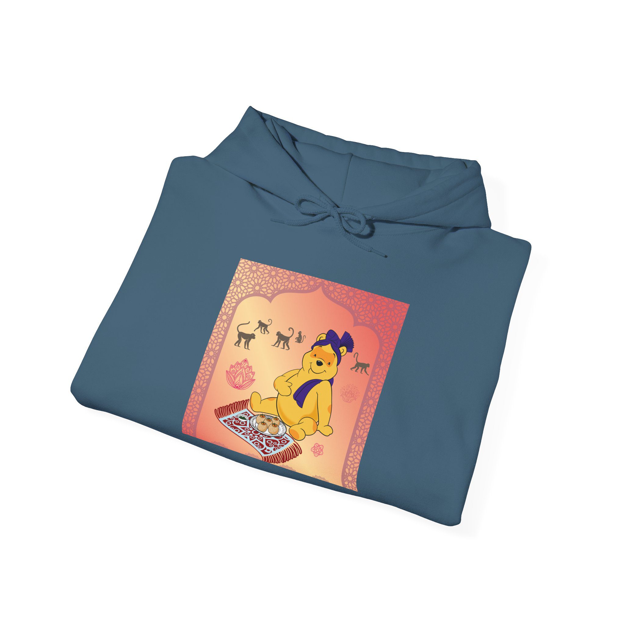 Professional Honey Lover finds nirvana in the art of indulgence, seated on a patterned carpet with a royal plate of sweets fit for the gods — or perhaps just a hungry bear. Around him, macaques observe like gentle monks, wise to the joy of simplicity. The golden light glows soft, somewhere between temple calm and teatime bliss.