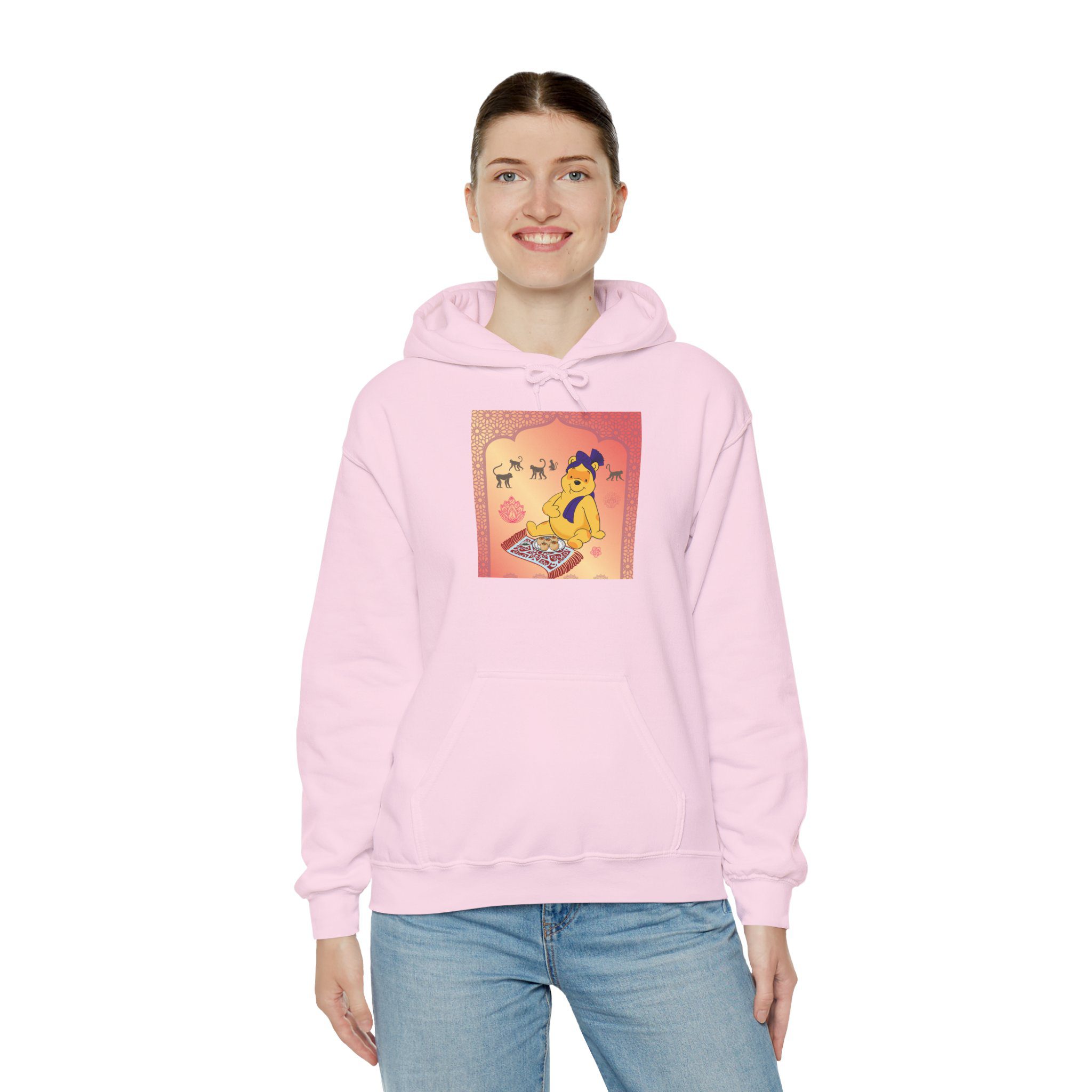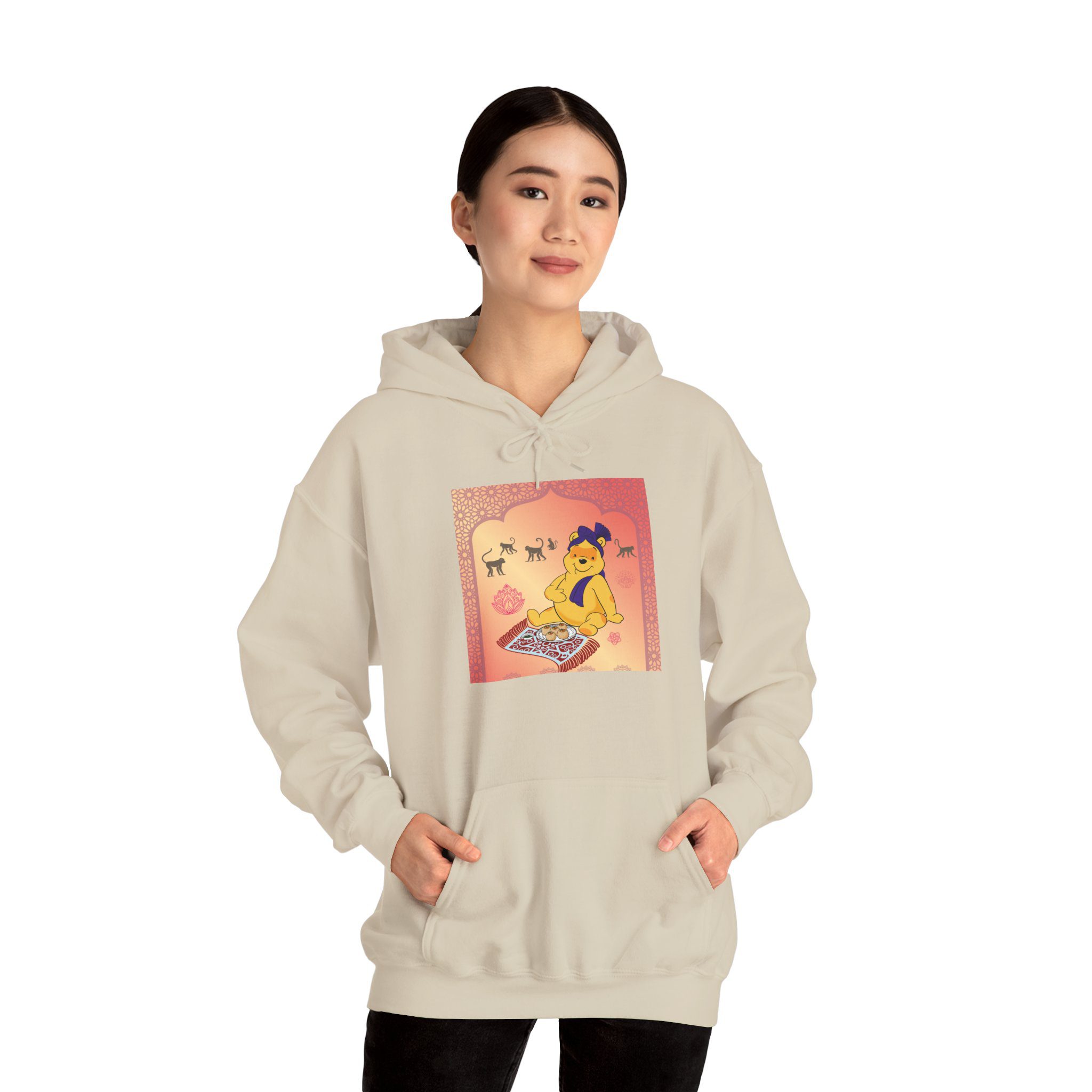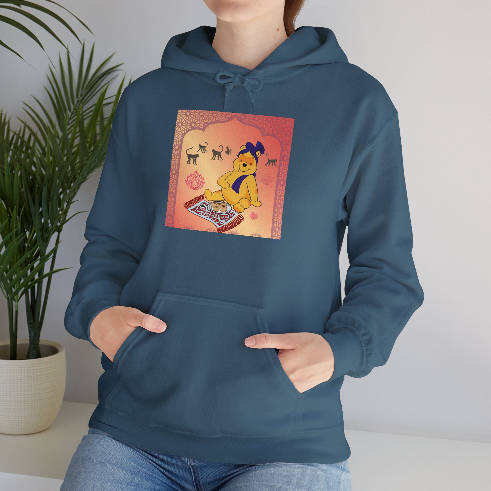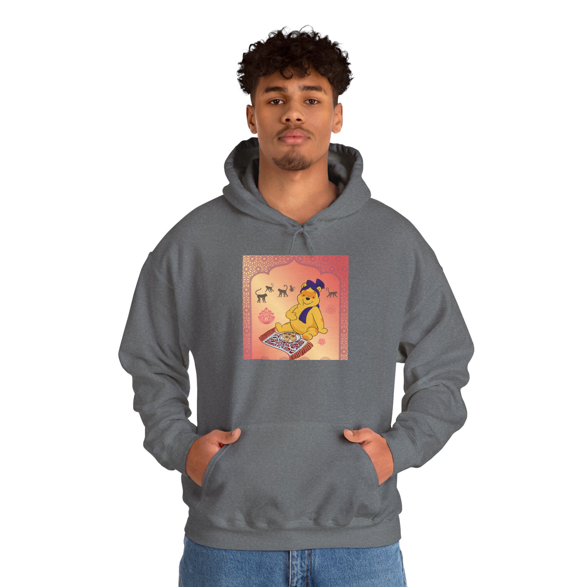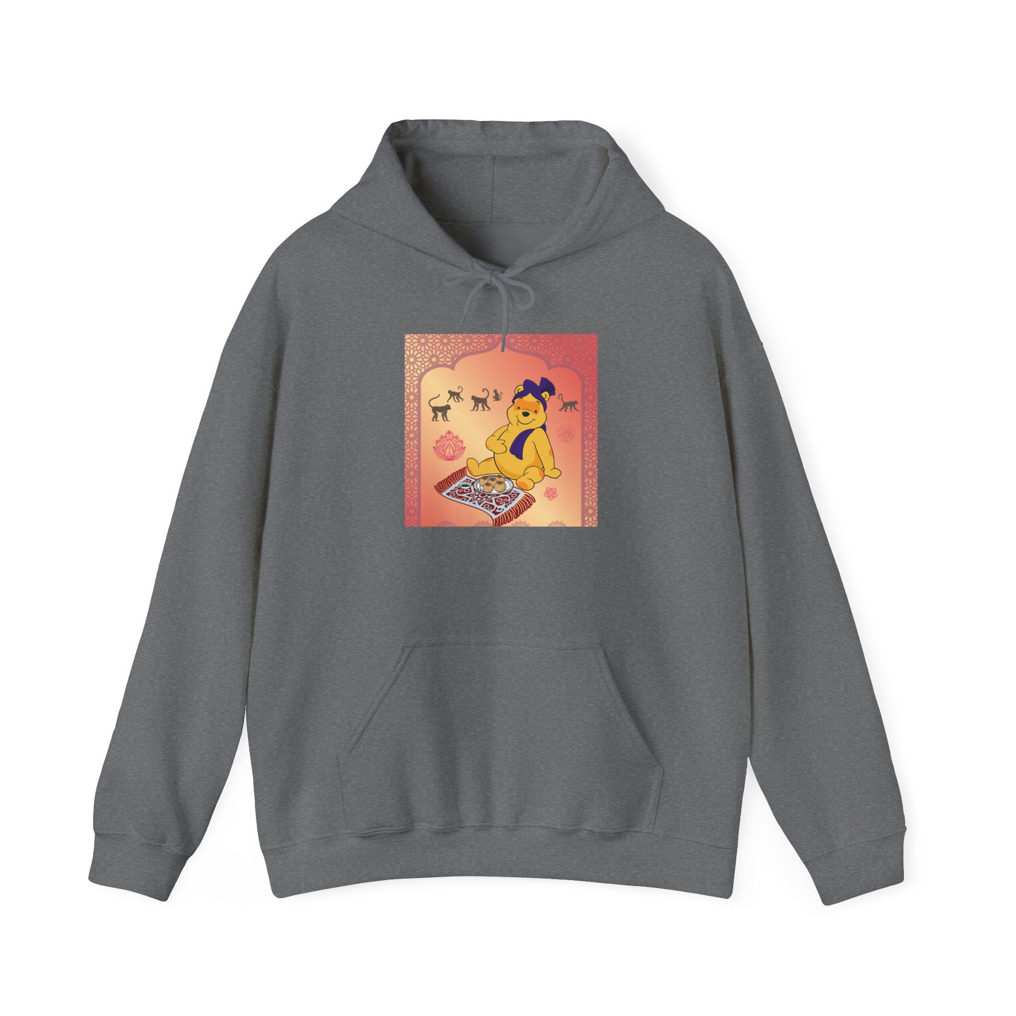 Professional Honey Lover finds nirvana in the art of indulgence, seated on a patterned carpet with a royal plate of sweets fit for the gods — or perhaps just a hungry bear. Around him, macaques observe like gentle monks, wise to the joy of simplicity. The golden light glows soft, somewhere between temple calm and teatime bliss.