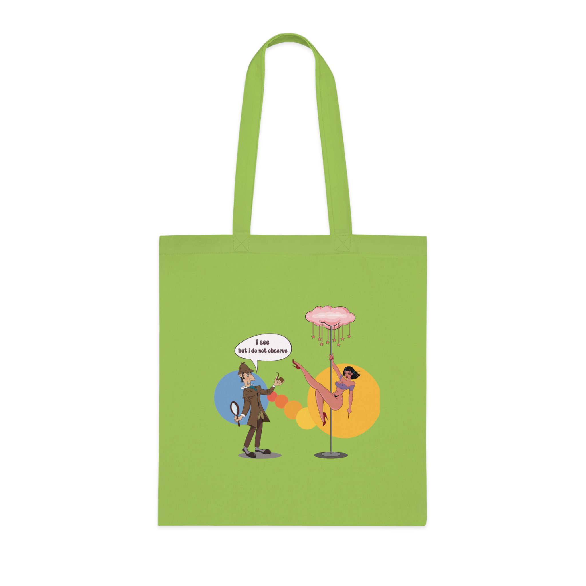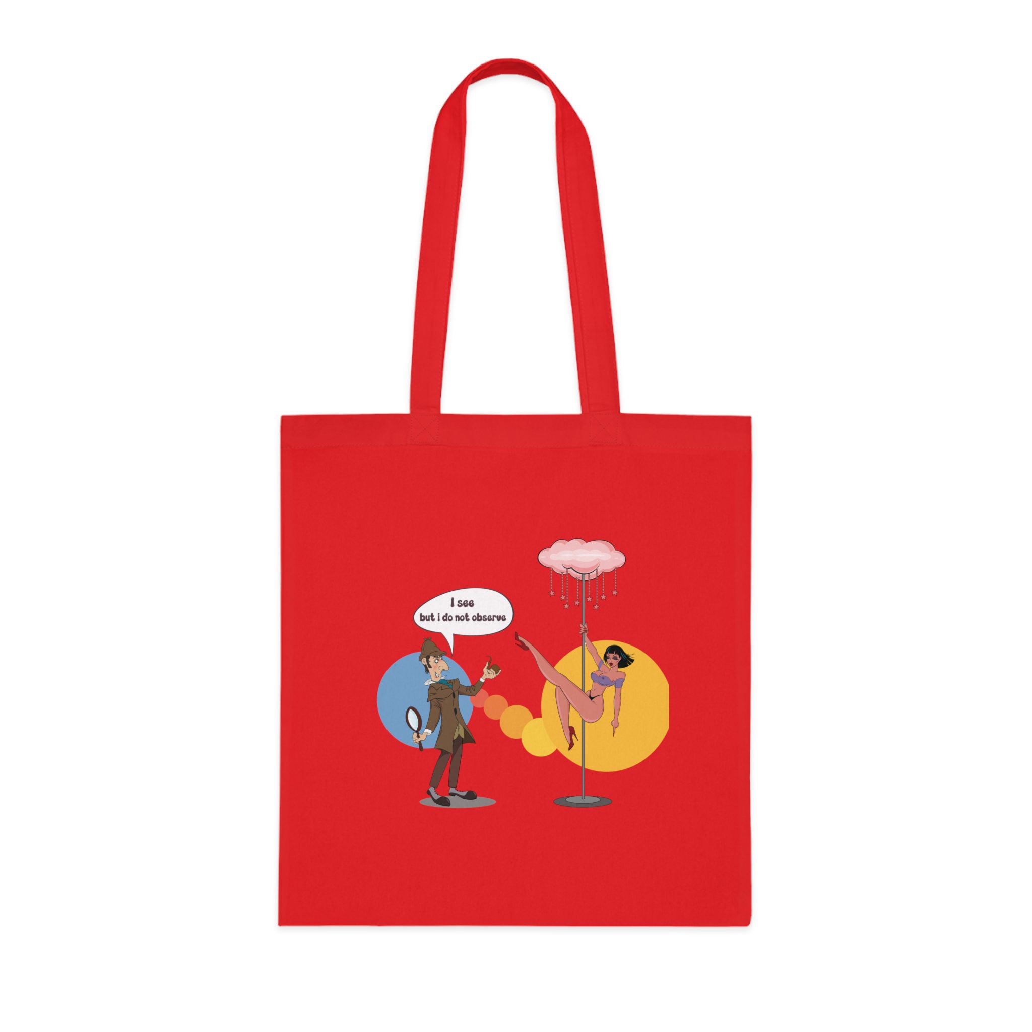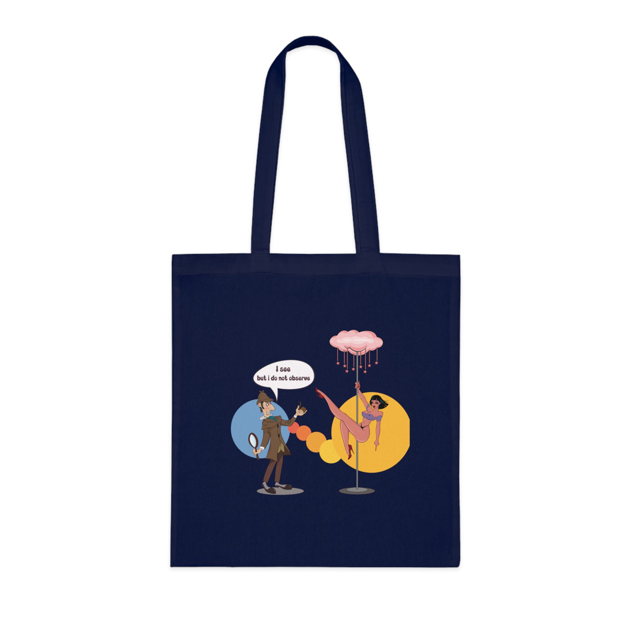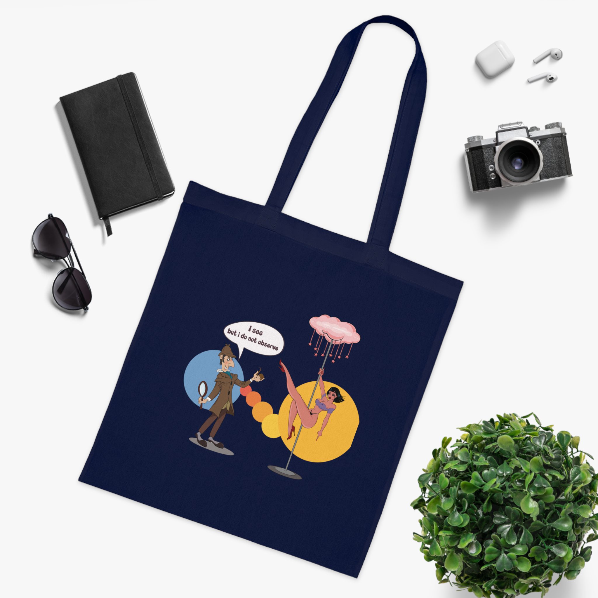 Even the keenest detective can lose focus sometimes. This Sherlock at the Sherlock at the Neon Lounge Bag places the legendary sleuth in a scene he definitely didn’t see coming. With his iconic line given a cheeky twist, the design blends wit, irony, and bold humor — perfect for fans of clever satire and delightfully unexpected storytelling.