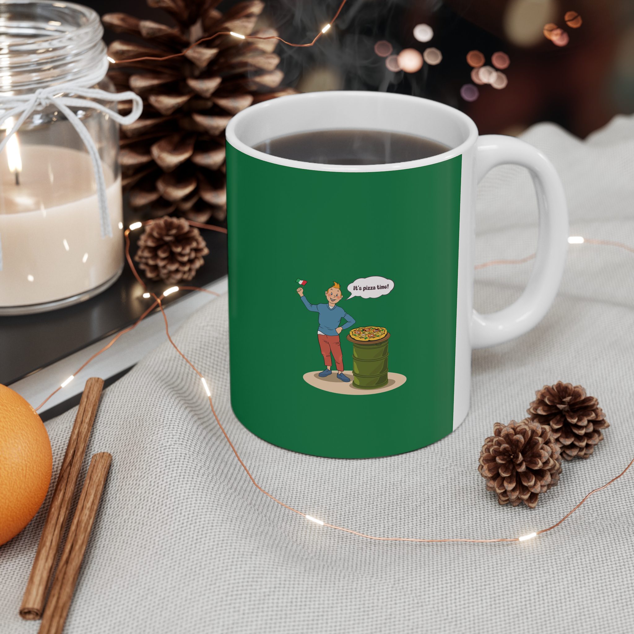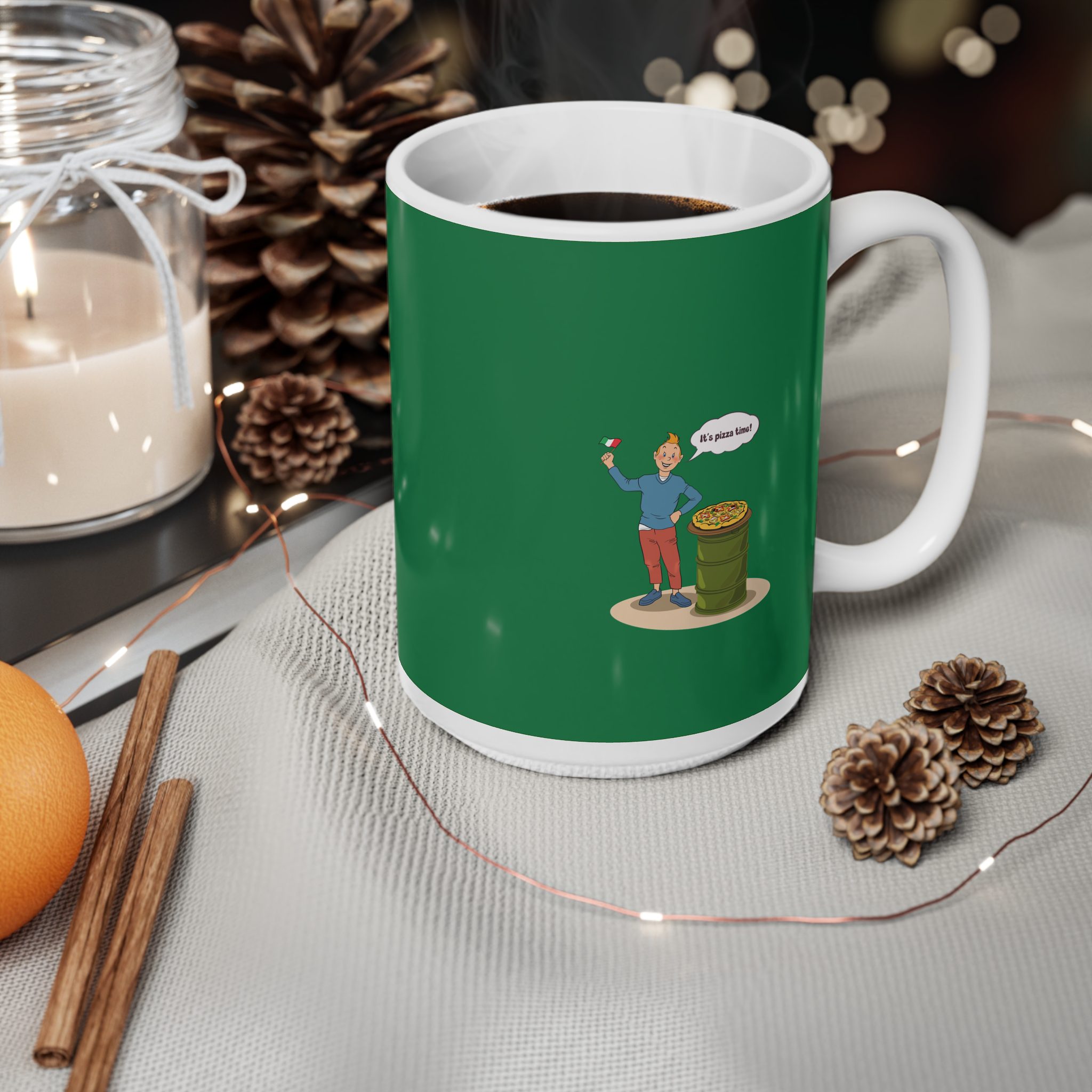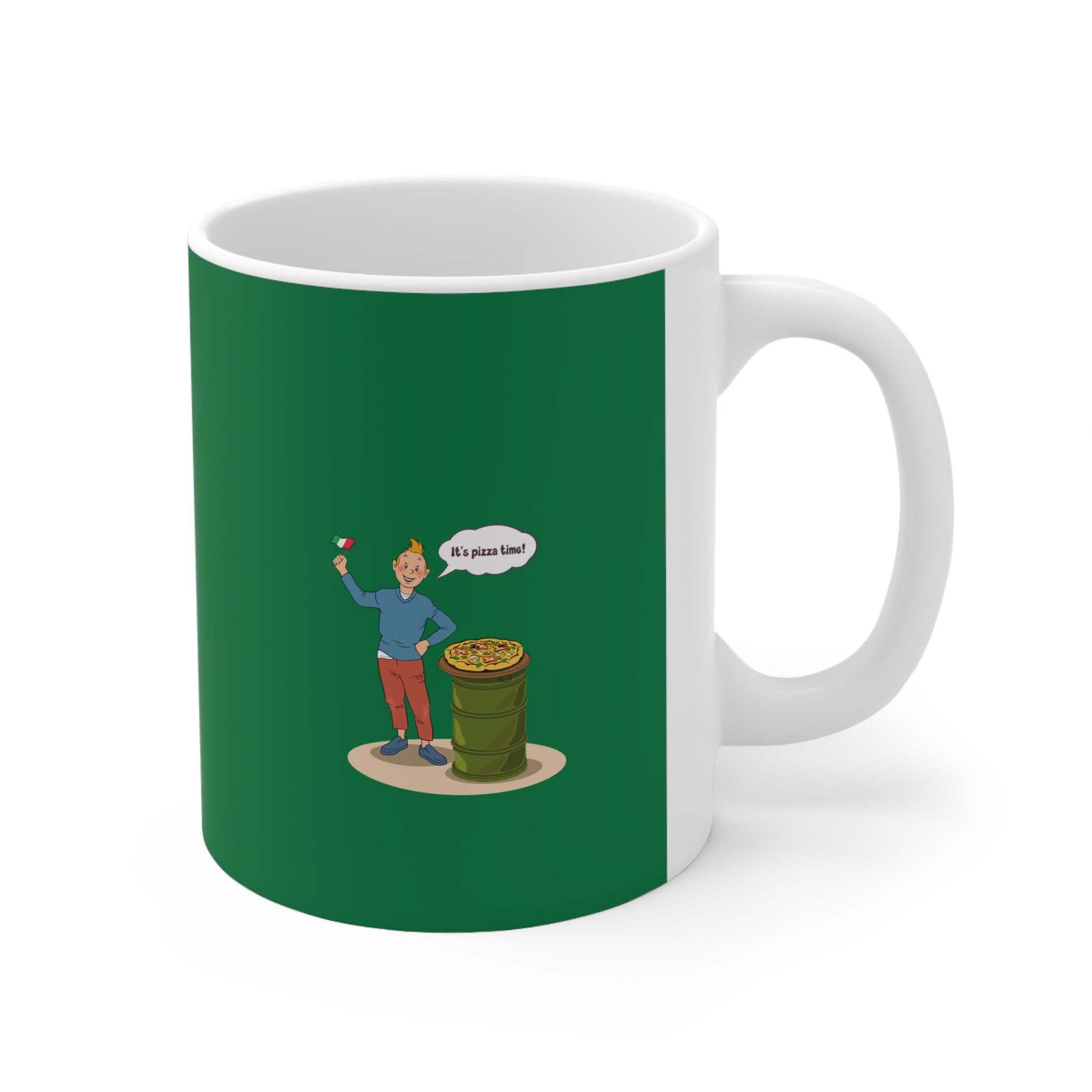 Bring a taste of happiness to your style with this Tintin’s Pizza Adventure Cup. Featuring Tintin proudly posing beside the Italian flag and a freshly baked pizza, this design celebrates everything cheesy, cozy, and irresistibly good. A perfect blend of comfort, humor, and flavor — ideal for food lovers and fans of feel-good adventures alike.