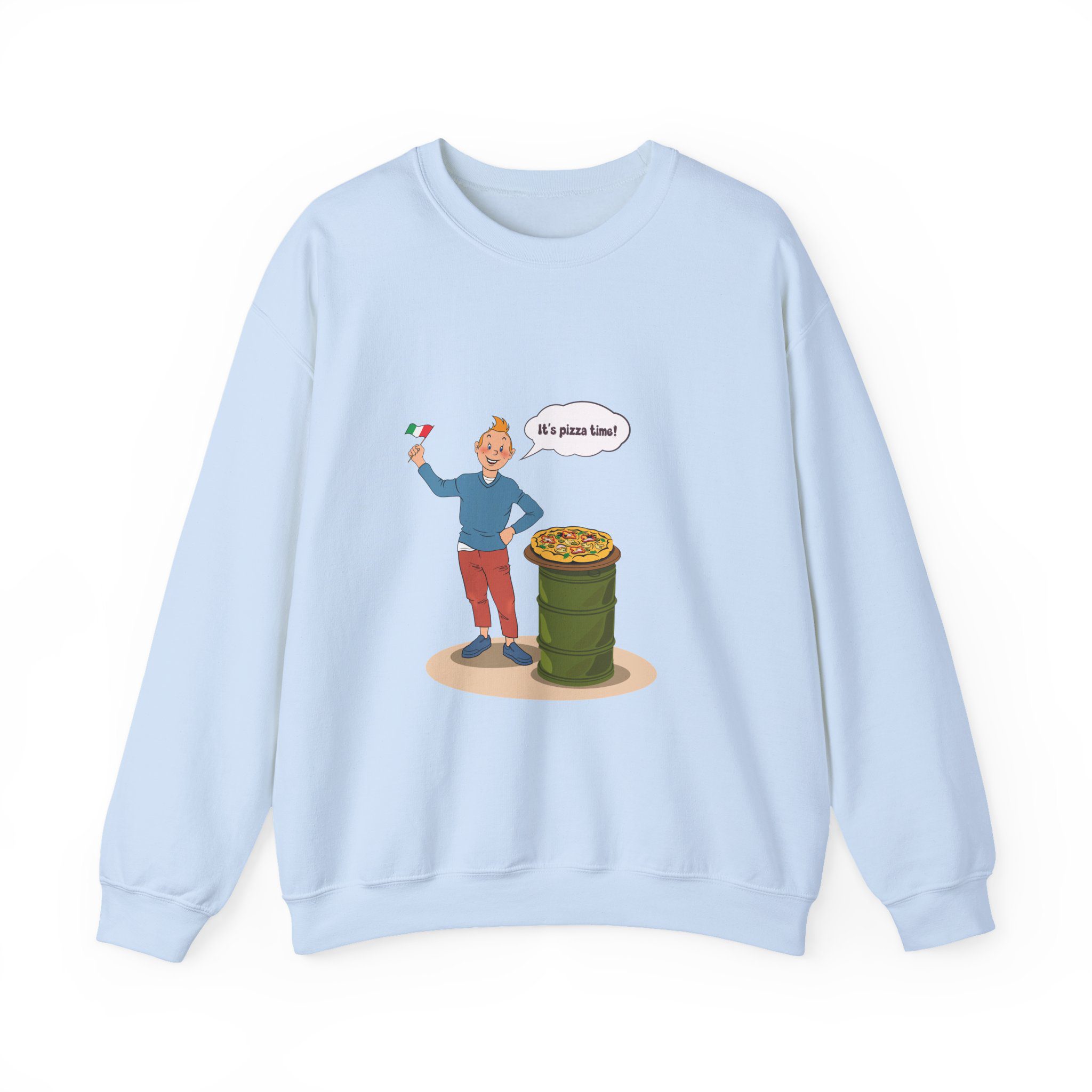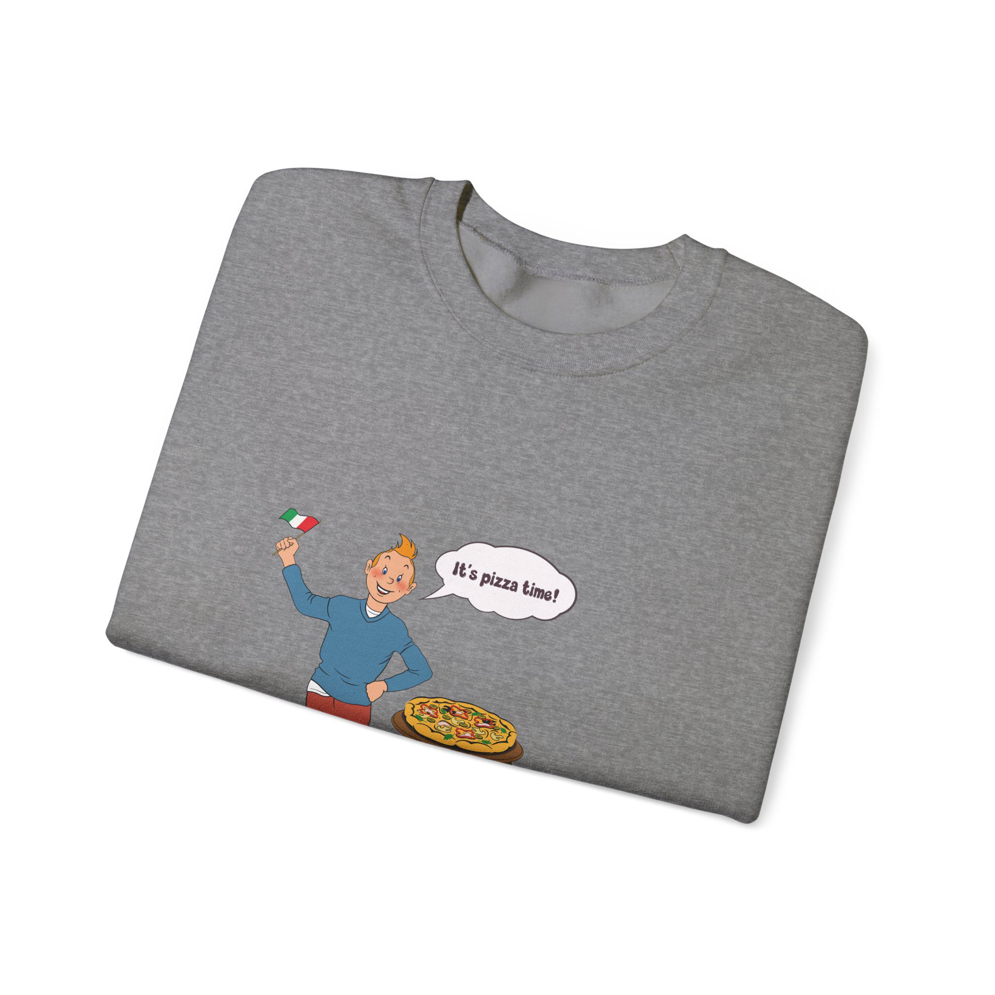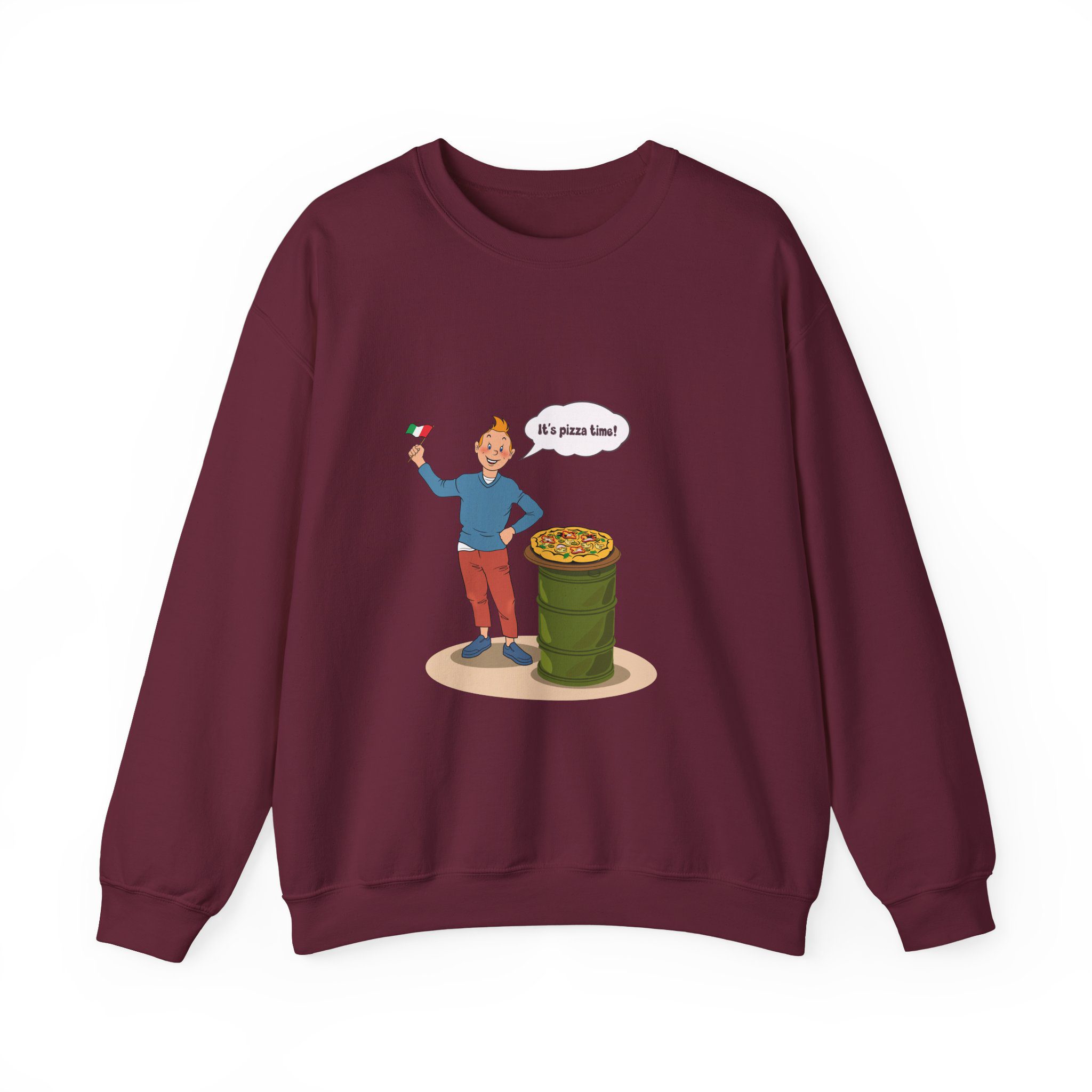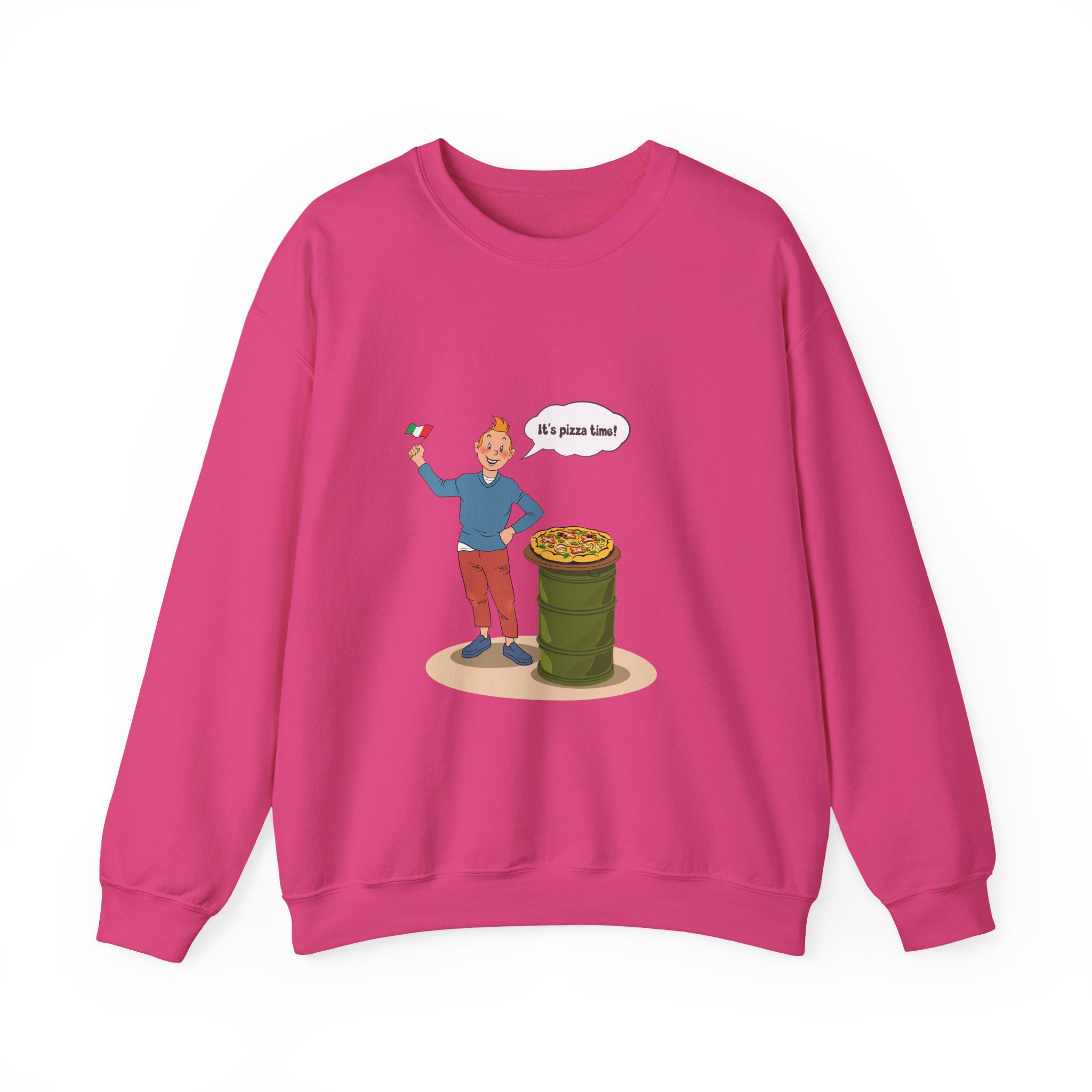 Bring a taste of happiness to your style with this Tintin’s Pizza Adventure Sweatshirt. Featuring Tintin proudly posing beside the Italian flag and a freshly baked pizza, this design celebrates everything cheesy, cozy, and irresistibly good. A perfect blend of comfort, humor, and flavor — ideal for food lovers and fans of feel-good adventures alike.