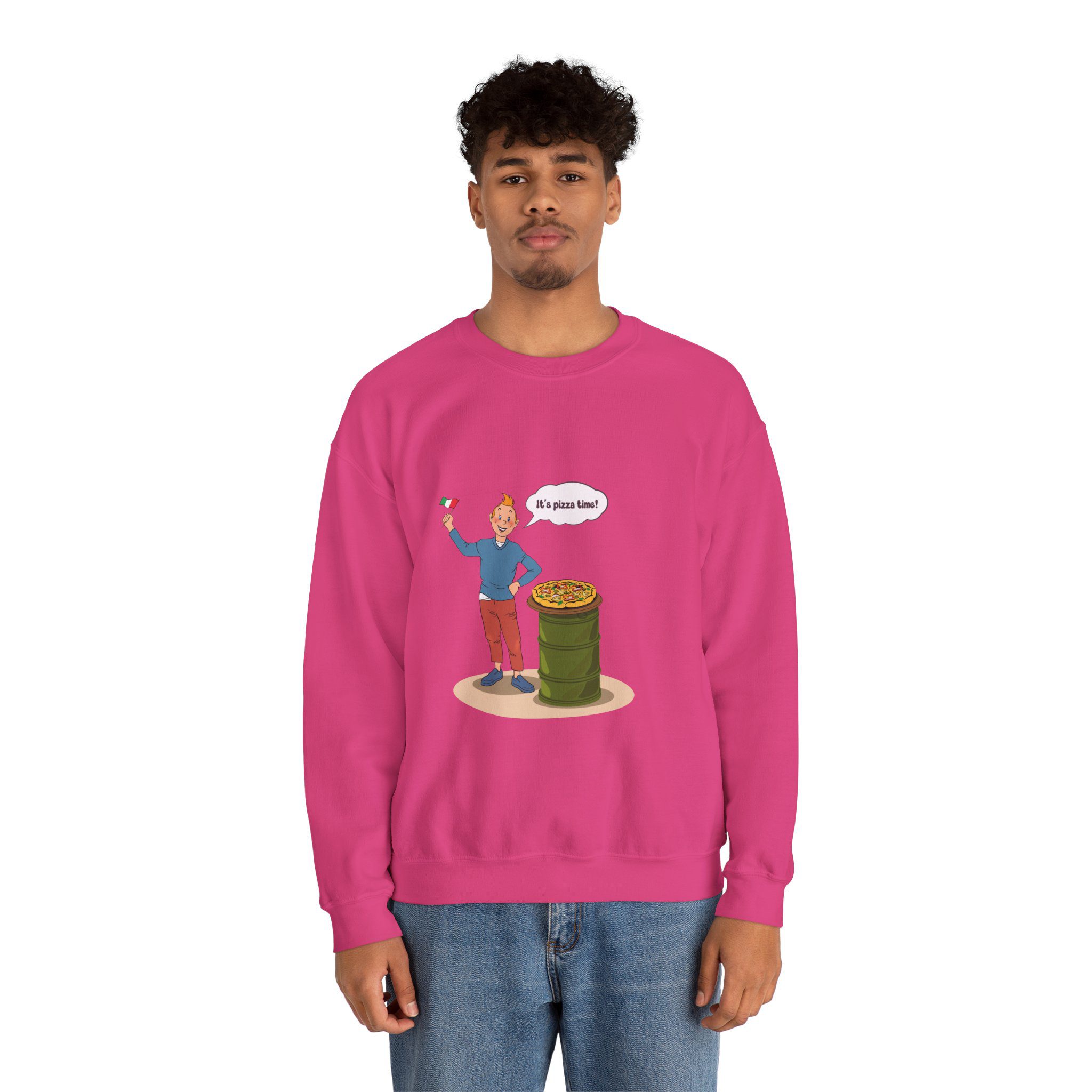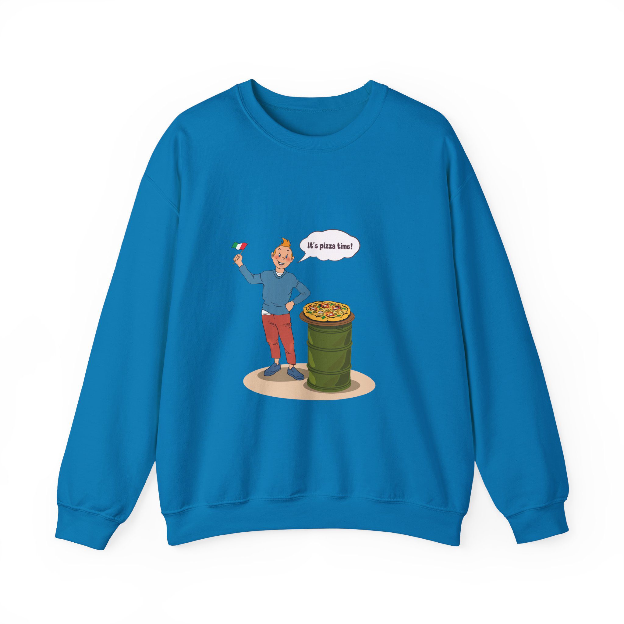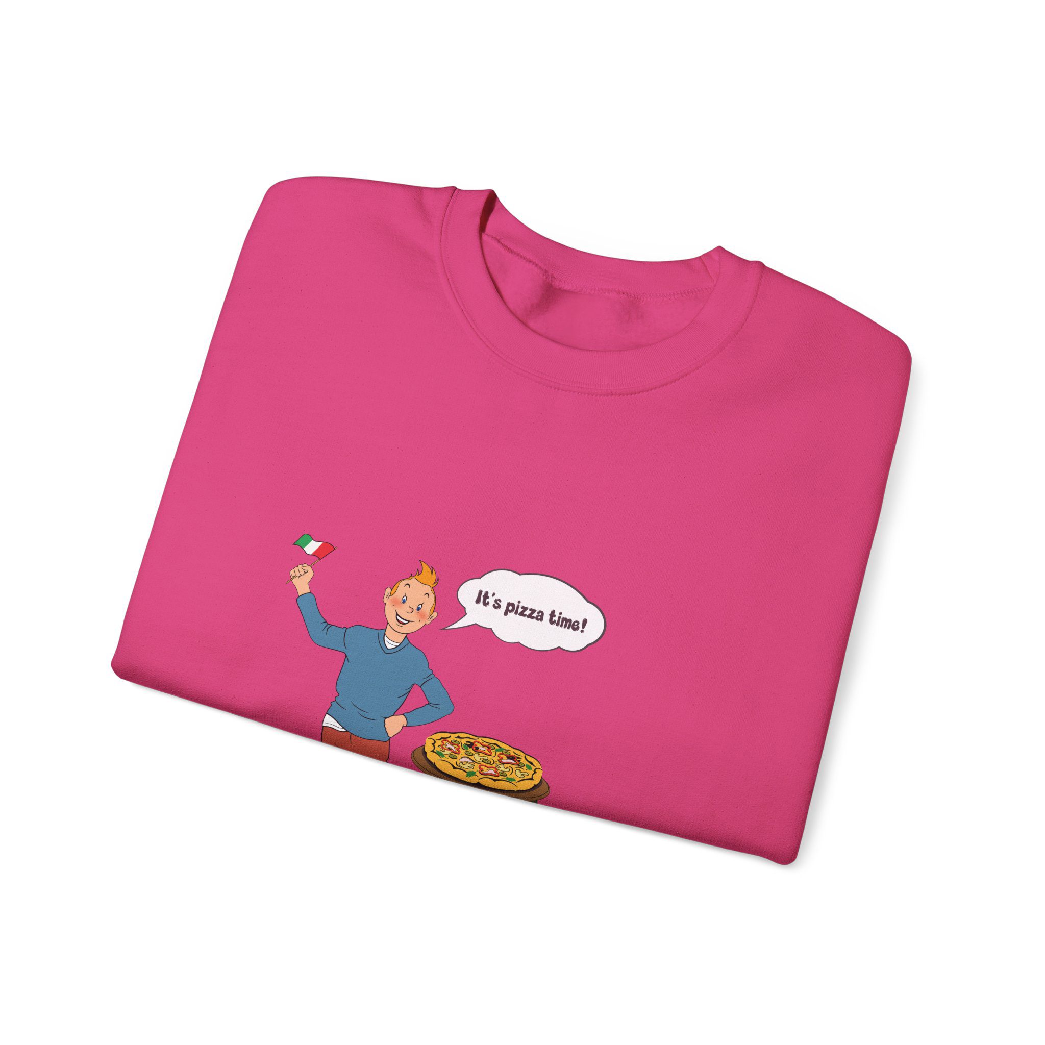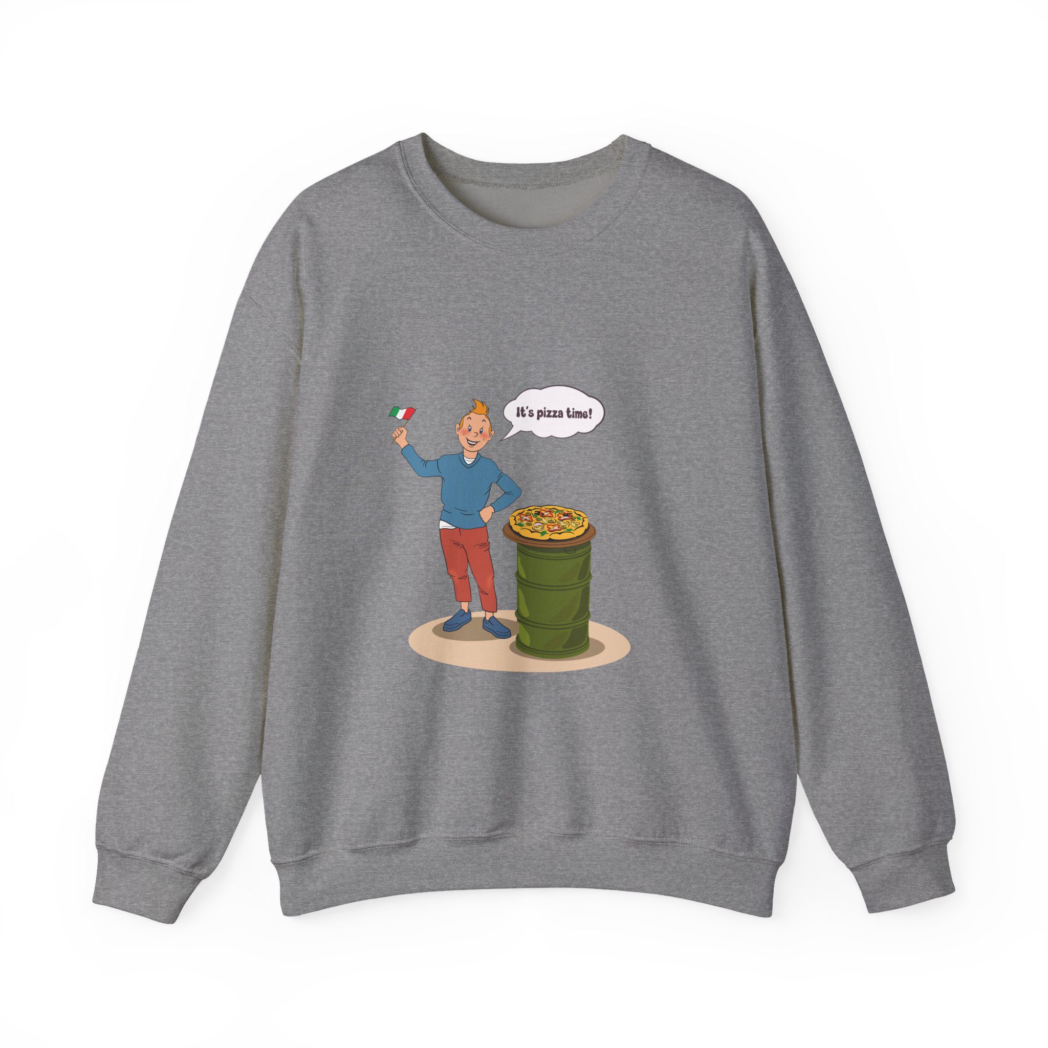 Bring a taste of happiness to your style with this Tintin’s Pizza Adventure Sweatshirt. Featuring Tintin proudly posing beside the Italian flag and a freshly baked pizza, this design celebrates everything cheesy, cozy, and irresistibly good. A perfect blend of comfort, humor, and flavor — ideal for food lovers and fans of feel-good adventures alike.