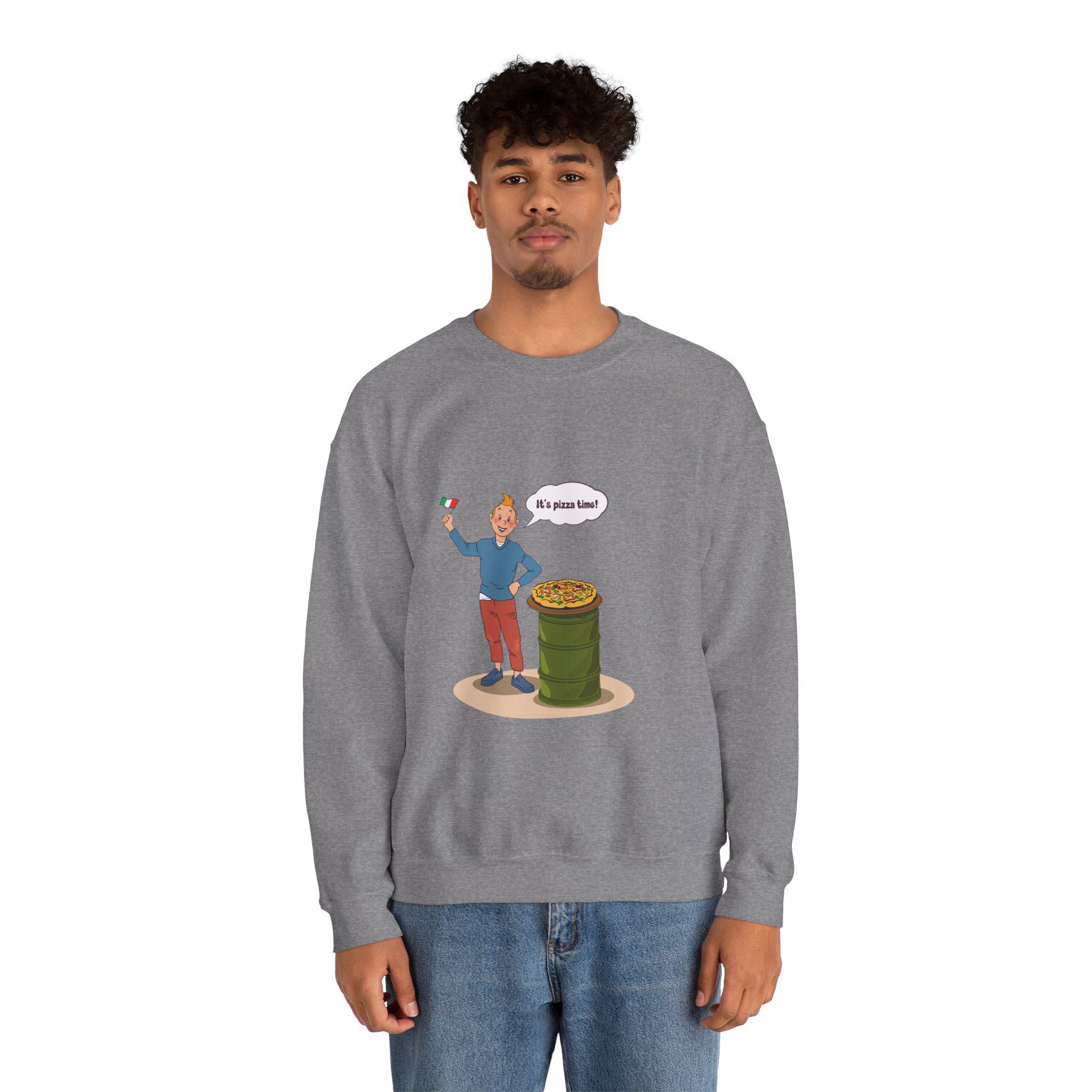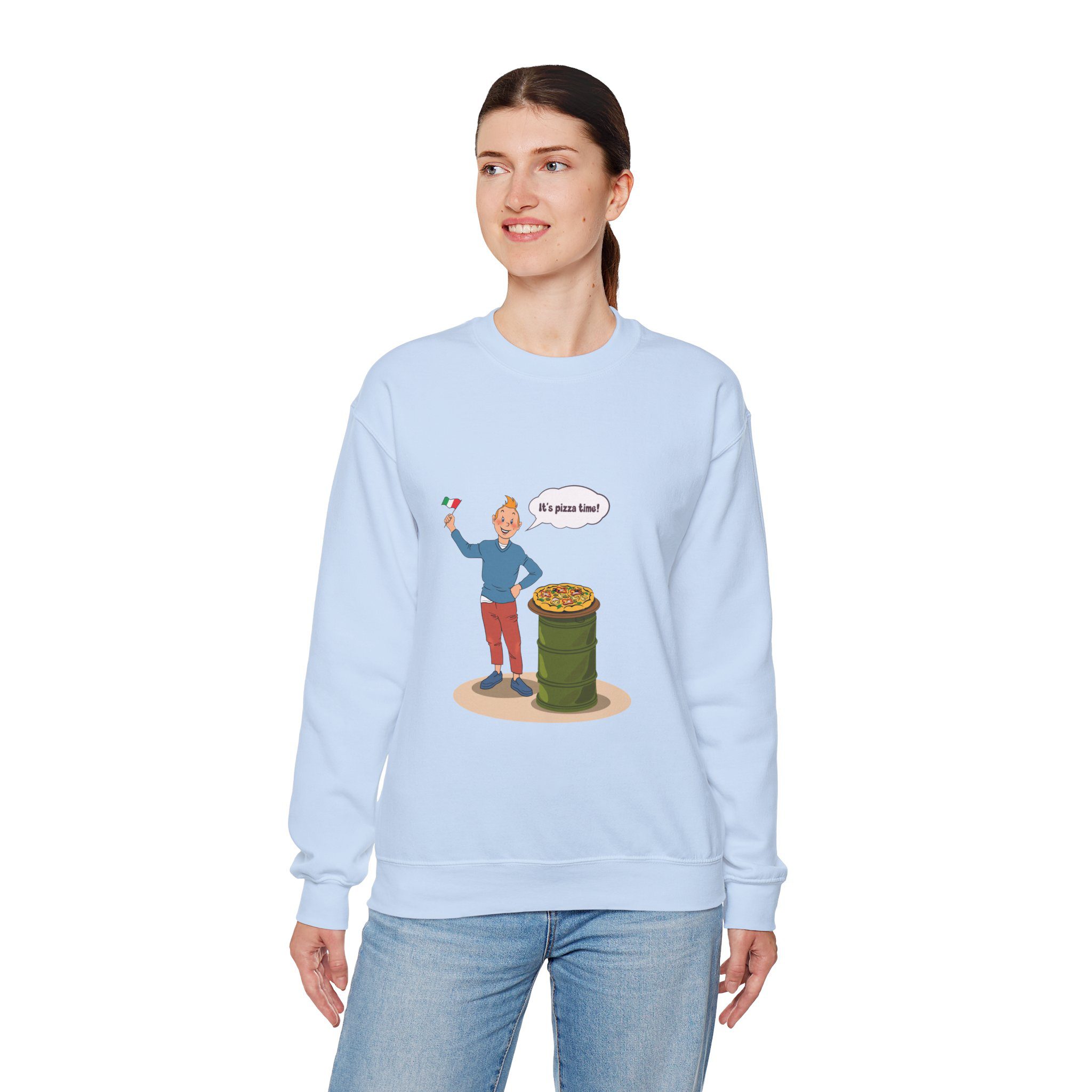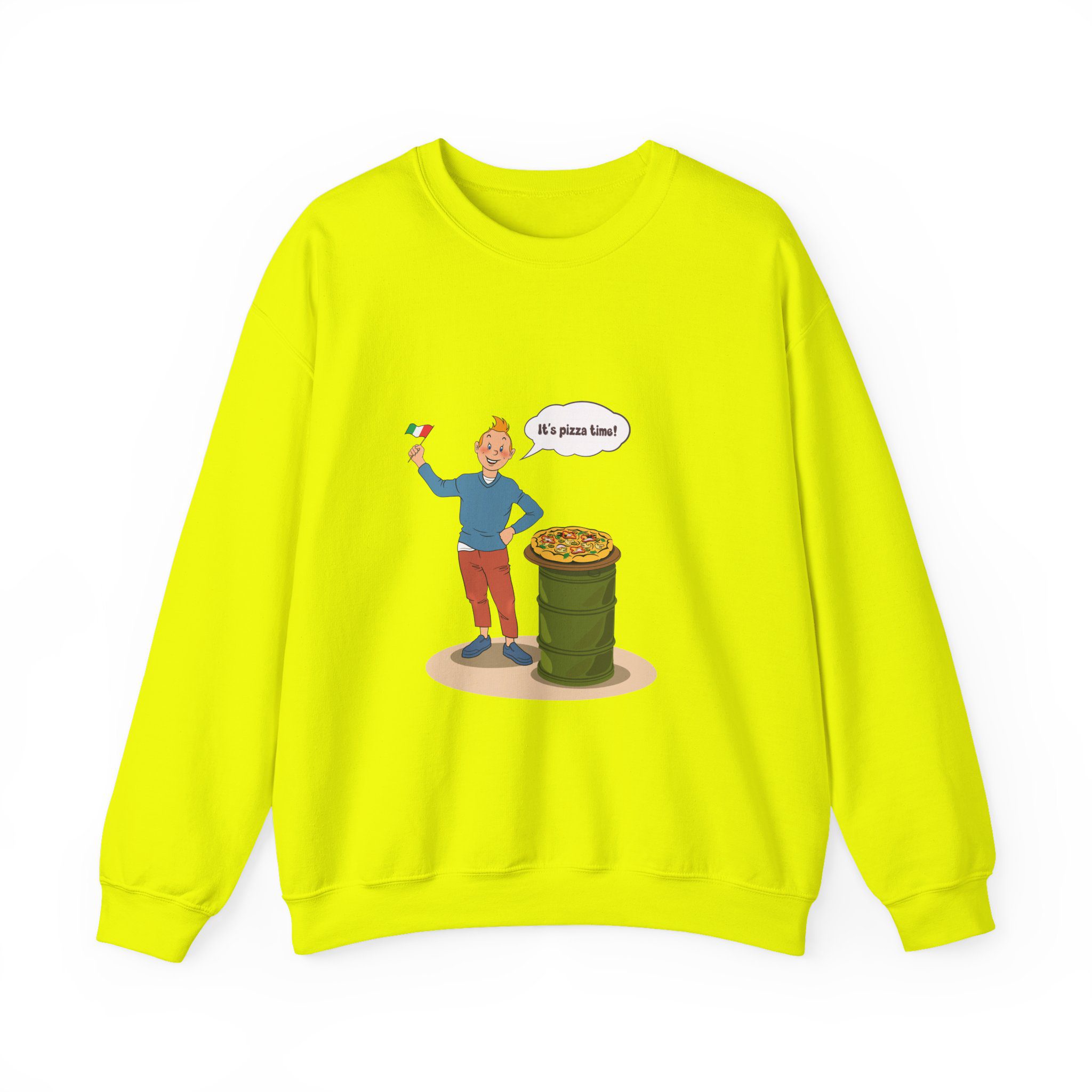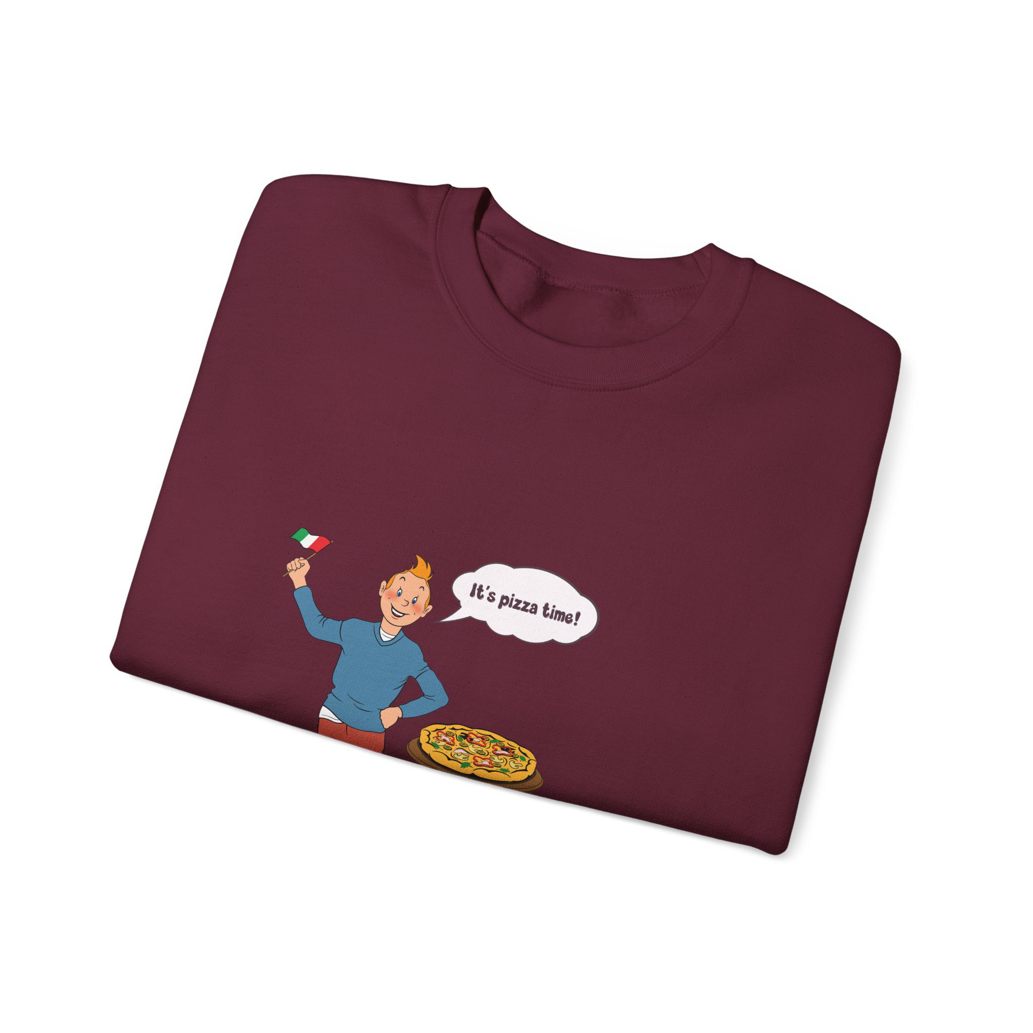 Bring a taste of happiness to your style with this Tintin’s Pizza Adventure Sweatshirt. Featuring Tintin proudly posing beside the Italian flag and a freshly baked pizza, this design celebrates everything cheesy, cozy, and irresistibly good. A perfect blend of comfort, humor, and flavor — ideal for food lovers and fans of feel-good adventures alike.