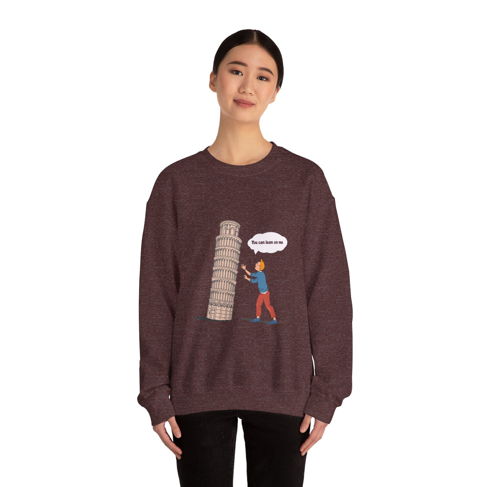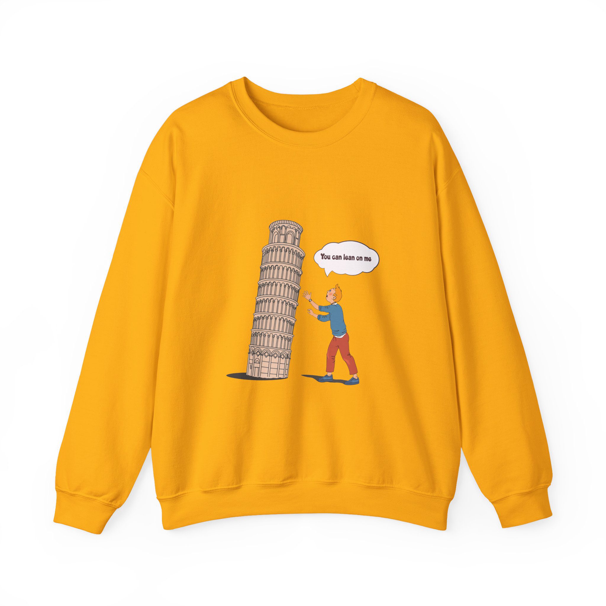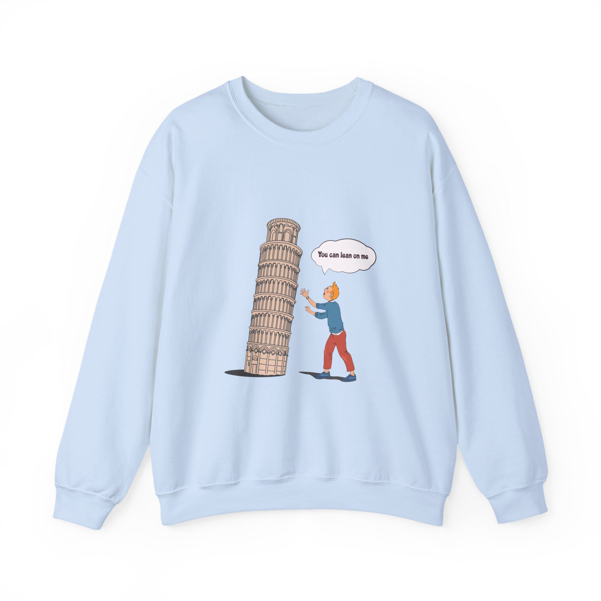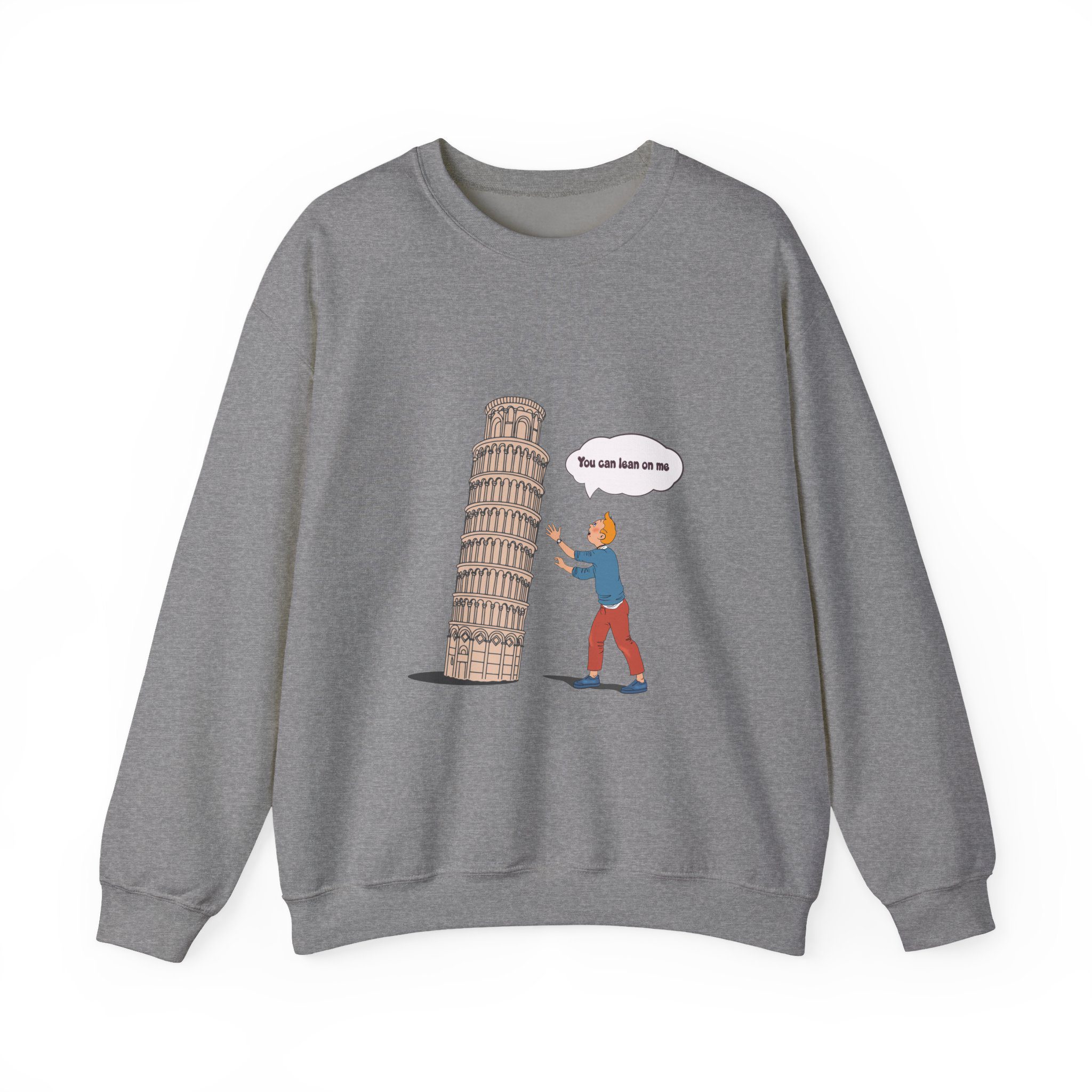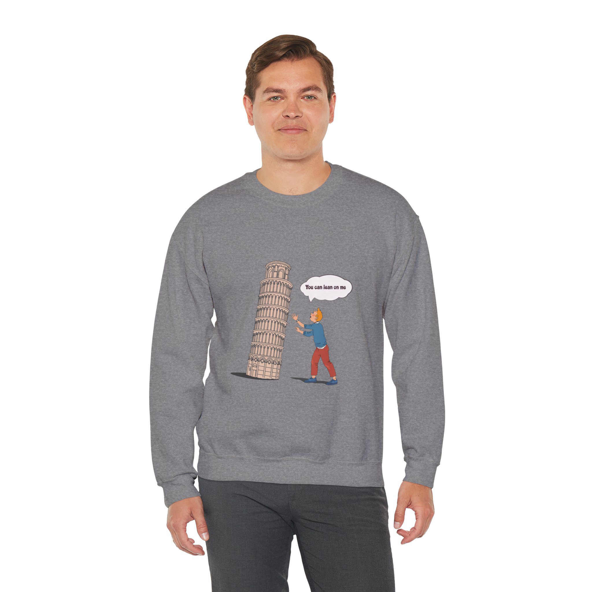 Find your balance with this Tintin in Pisa Sweatshirt, where the iconic reporter lends a hand to one of Italy’s most beloved landmarks. Playful and full of charm, this design celebrates curiosity, travel, and a touch of heroics. Perfect for explorers, Tintin enthusiasts, and anyone who enjoys a lighthearted twist on classic adventures.