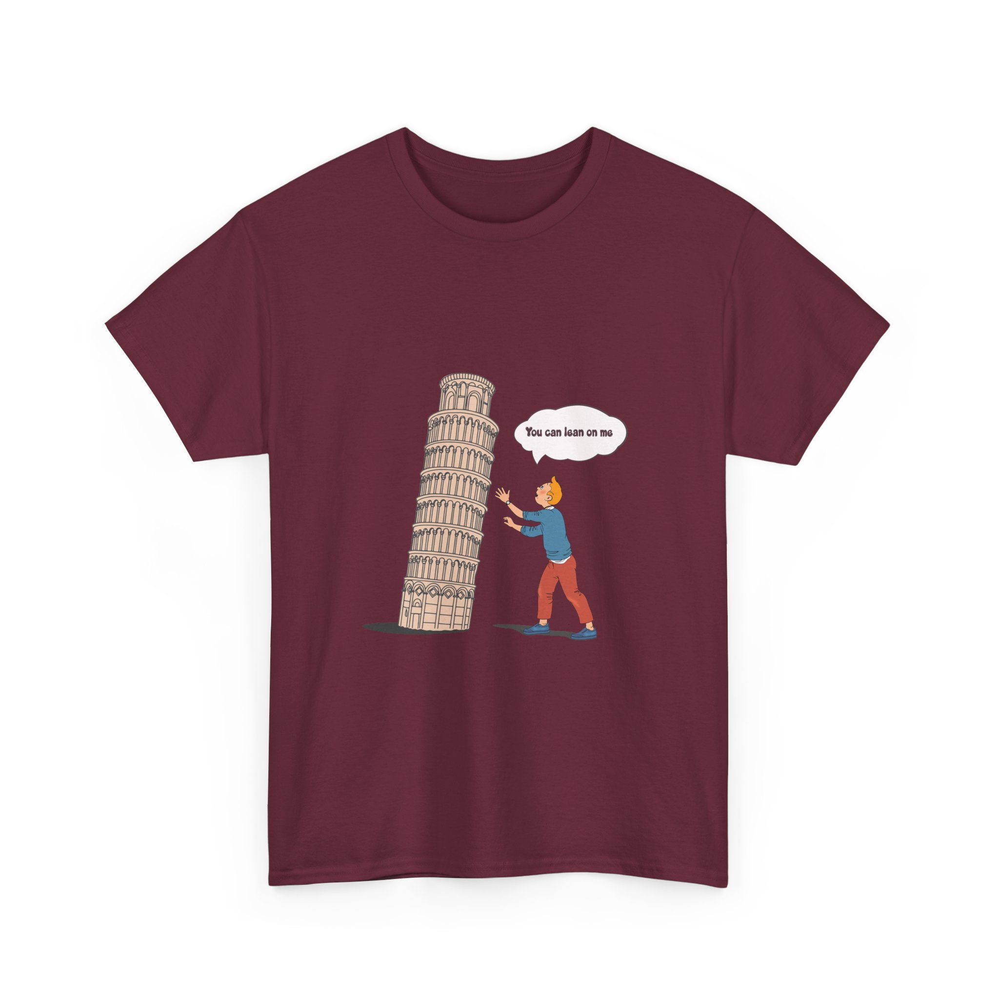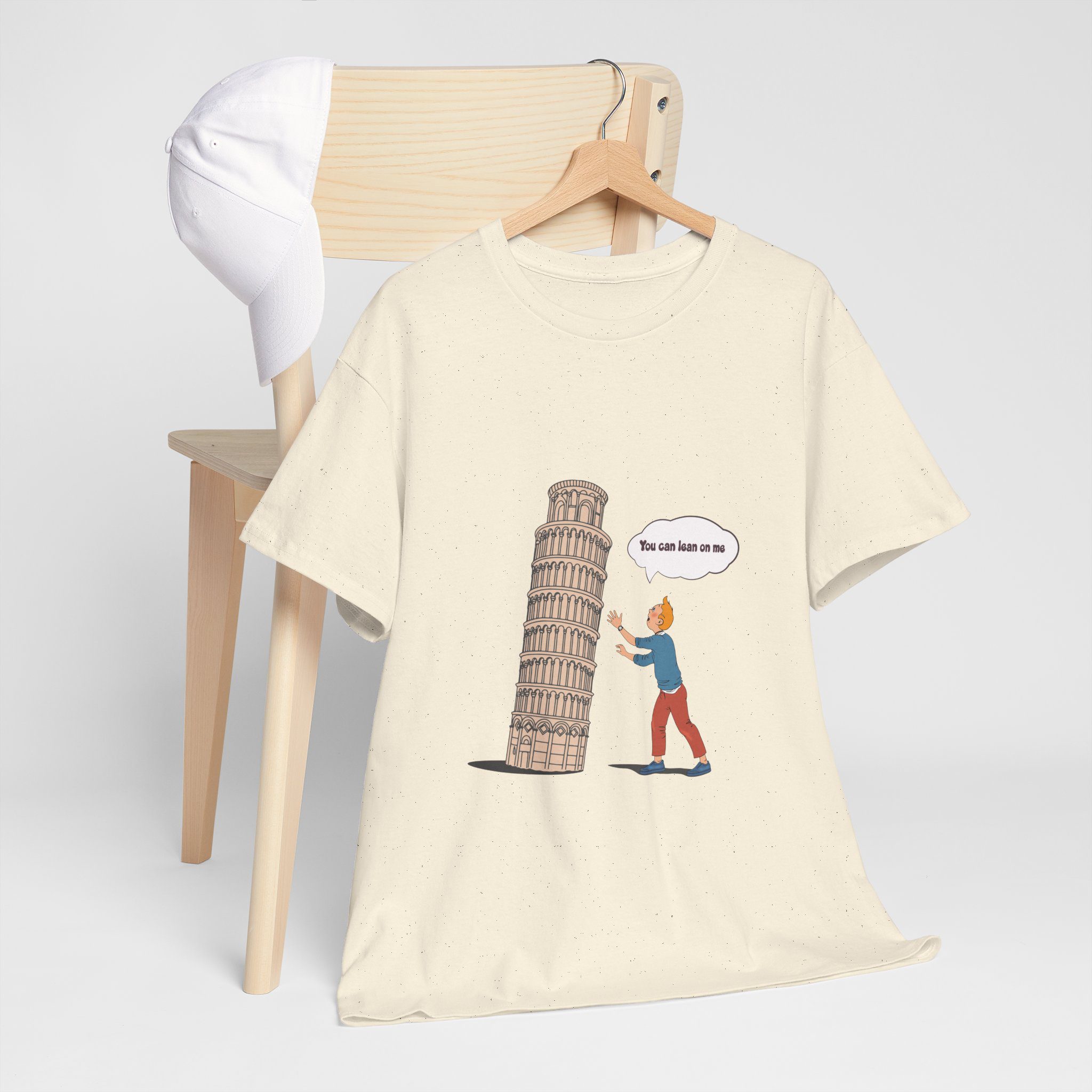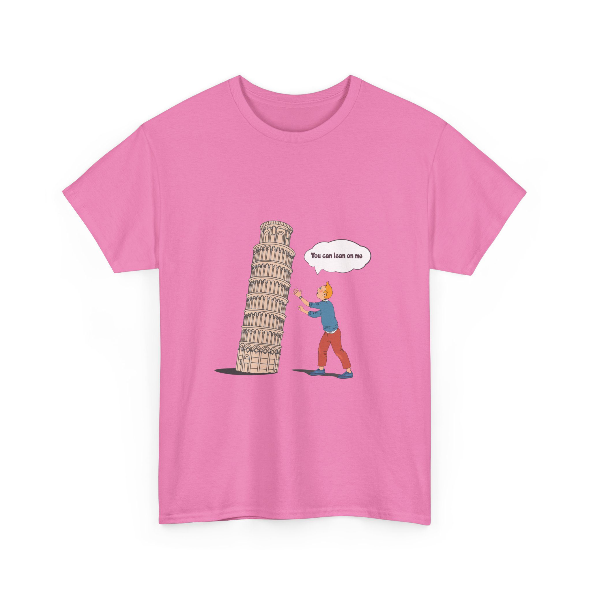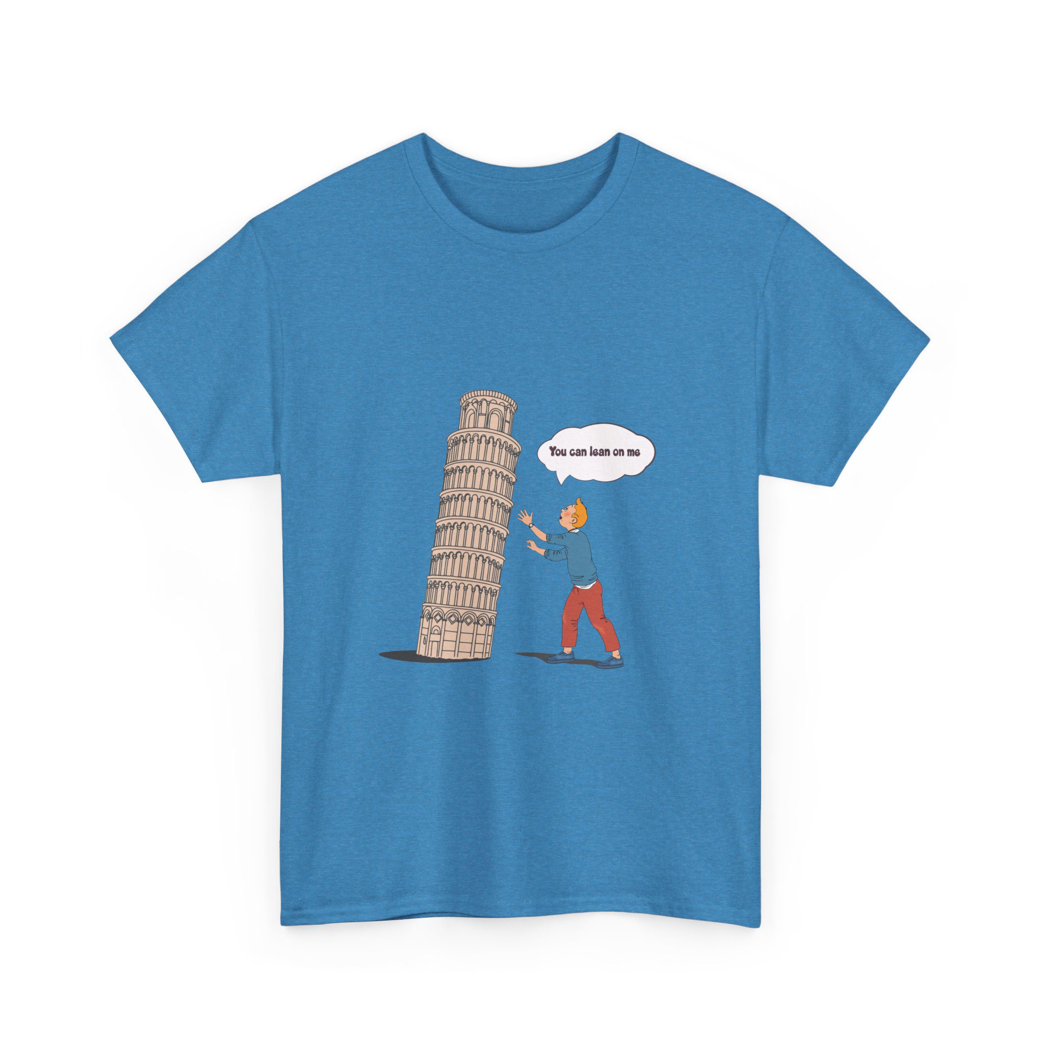 Find your balance with this Tintin in Pisa T-shirt, where the iconic reporter lends a hand to one of Italy’s most beloved landmarks. Playful and full of charm, this design celebrates curiosity, travel, and a touch of heroics. Perfect for explorers, Tintin enthusiasts, and anyone who enjoys a lighthearted twist on classic adventures.