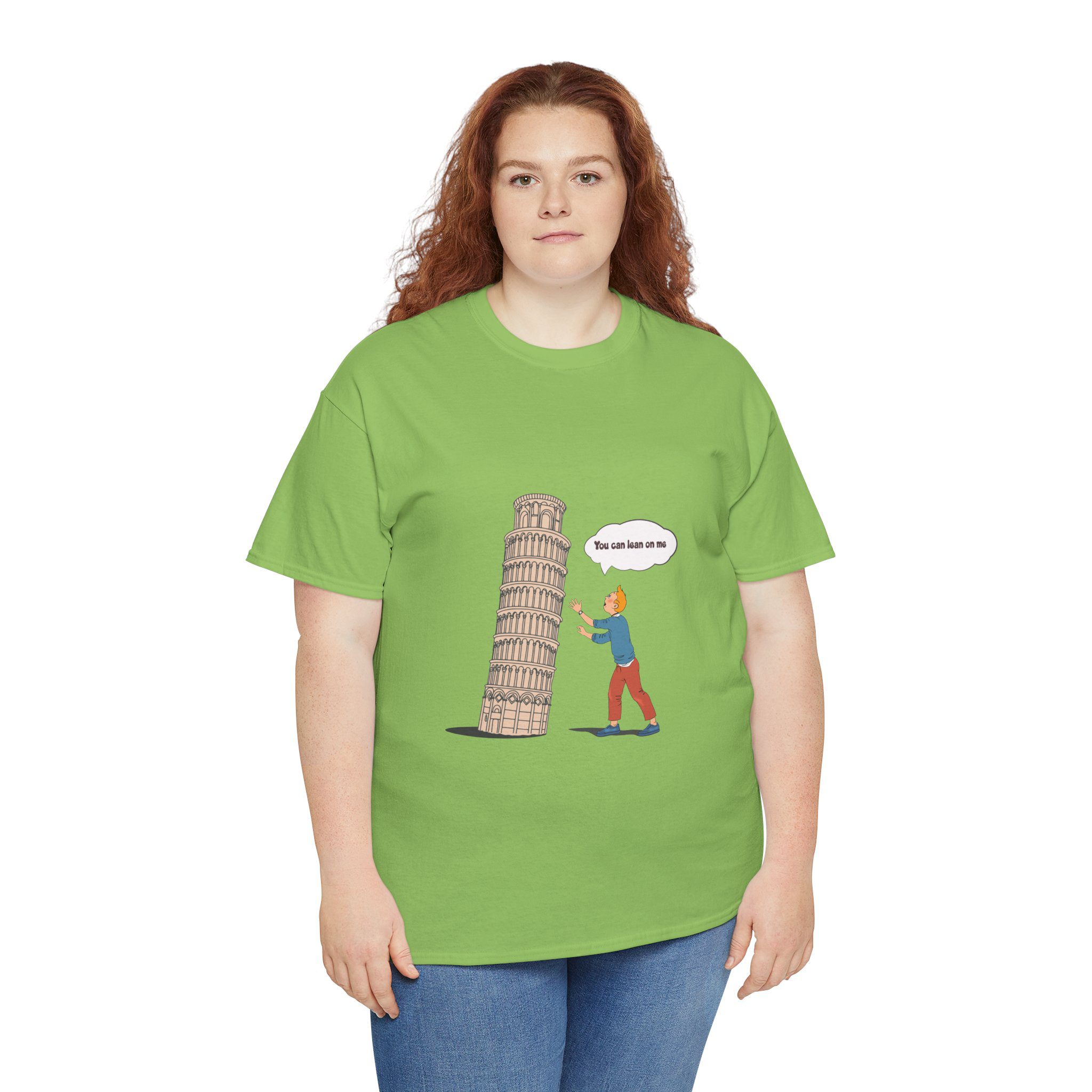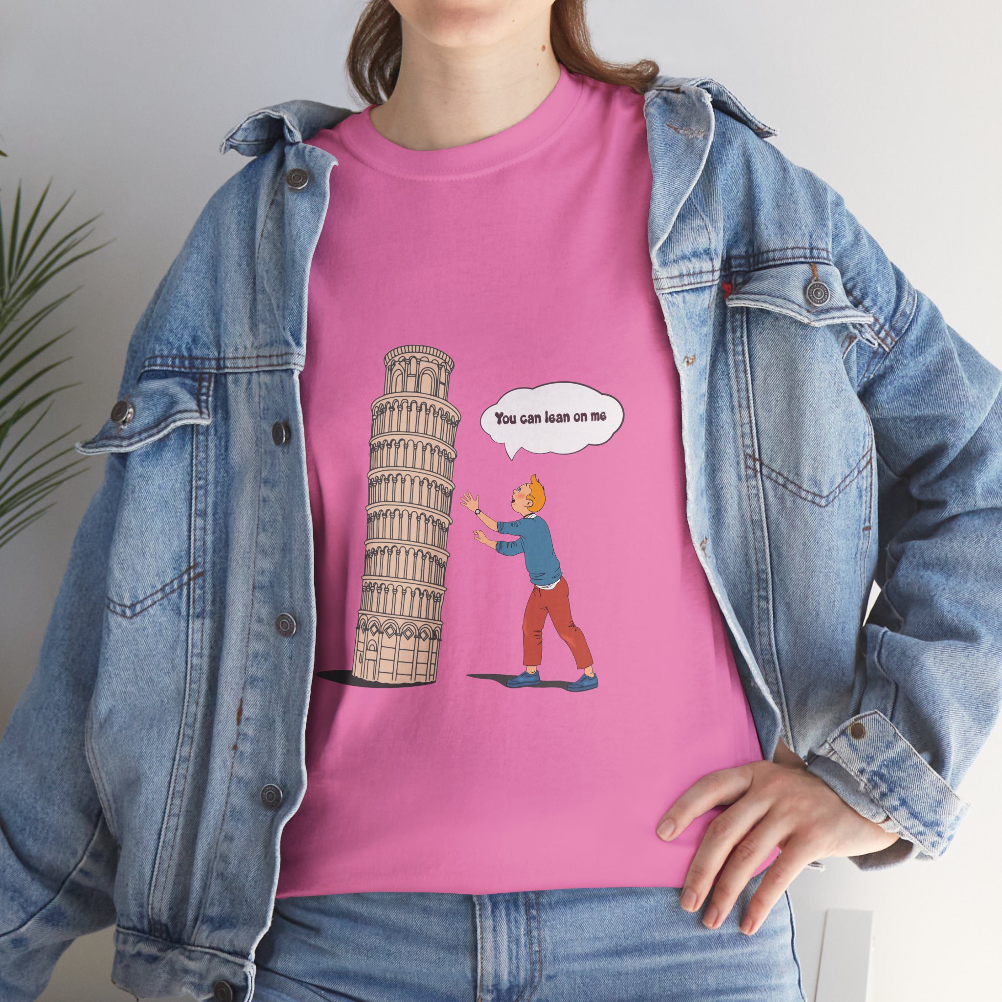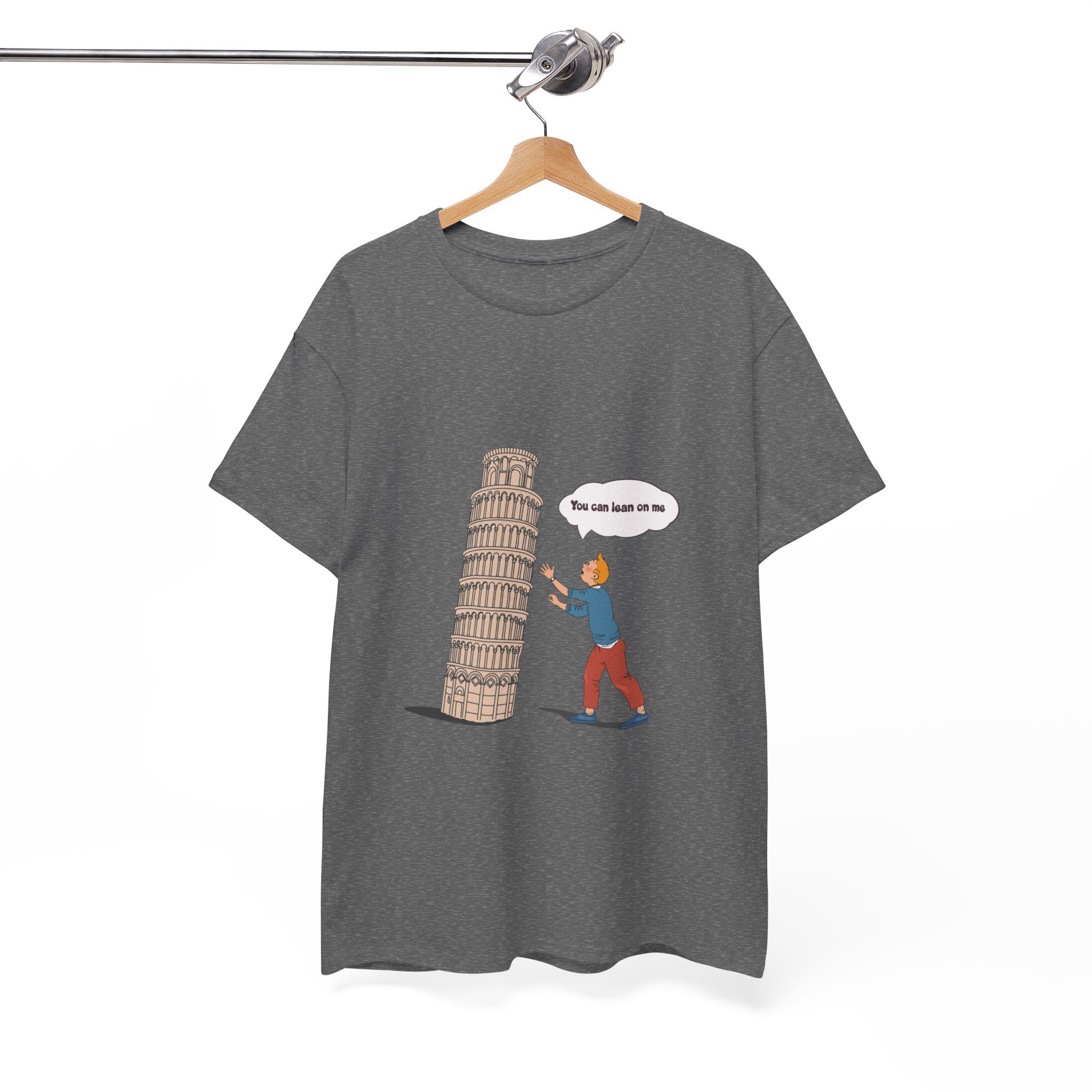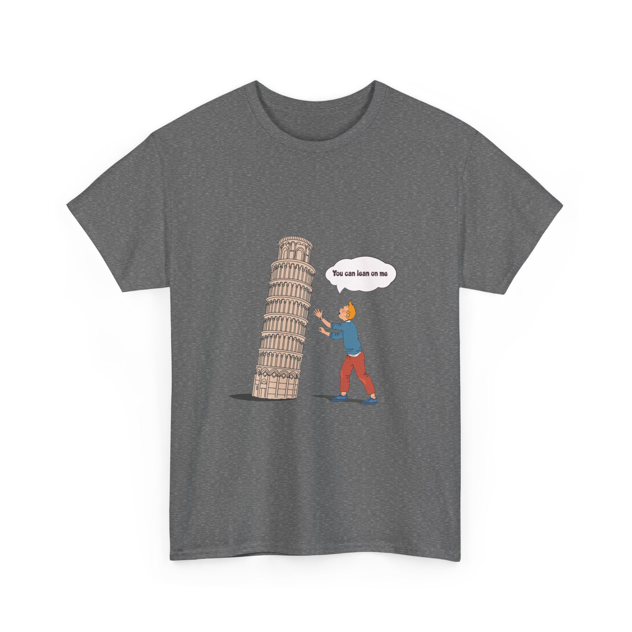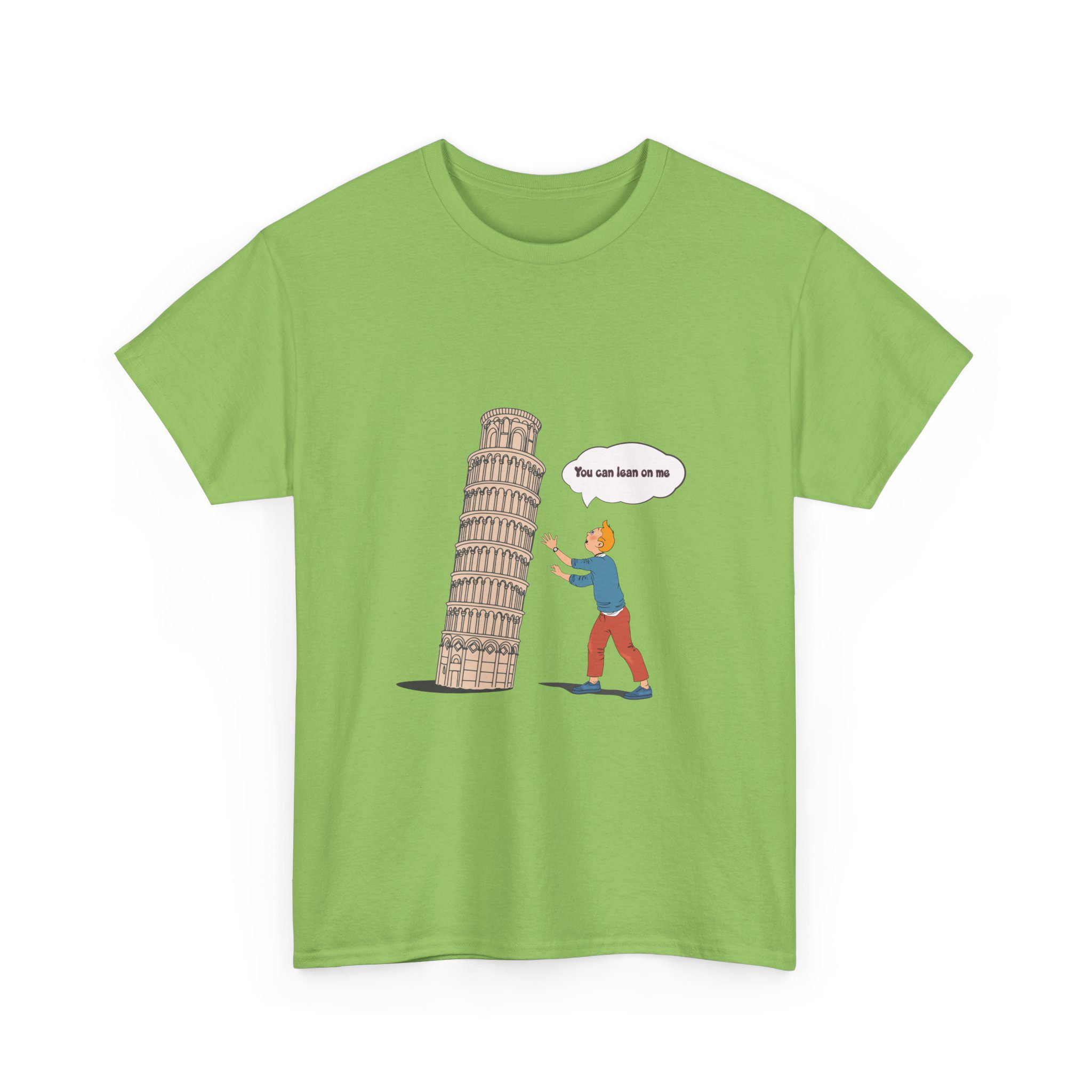 Find your balance with this Tintin in Pisa T-shirt, where the iconic reporter lends a hand to one of Italy’s most beloved landmarks. Playful and full of charm, this design celebrates curiosity, travel, and a touch of heroics. Perfect for explorers, Tintin enthusiasts, and anyone who enjoys a lighthearted twist on classic adventures.