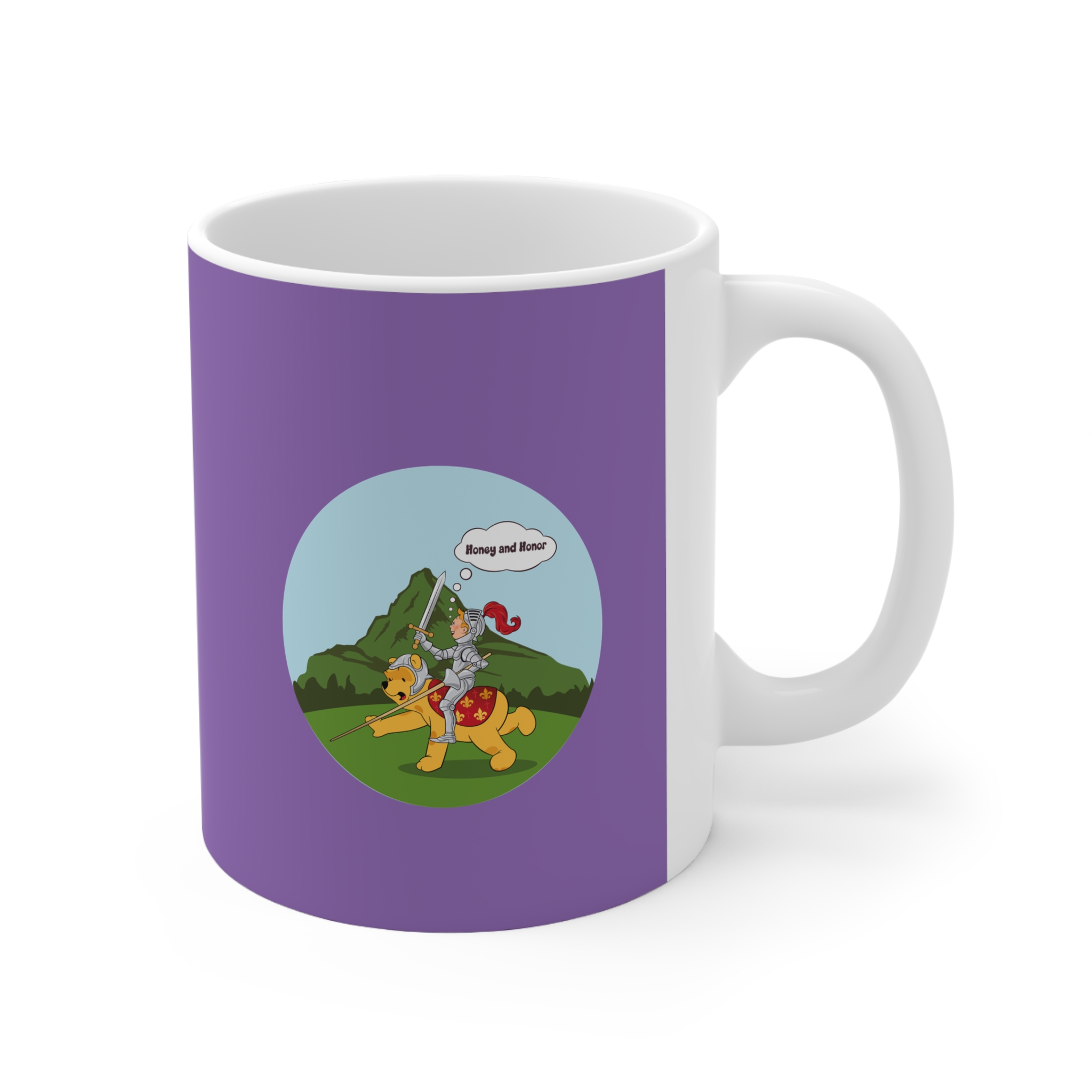 Gallop into imagination with this Sir Tintin Riding Winnie Cup, where the fearless reporter takes to battle atop none other than Winnie the Pooh. Sword in hand and courage shining, this design blends medieval valor with playful fantasy — an irresistible pick for dreamers, artists, and lovers of quirky adventures.