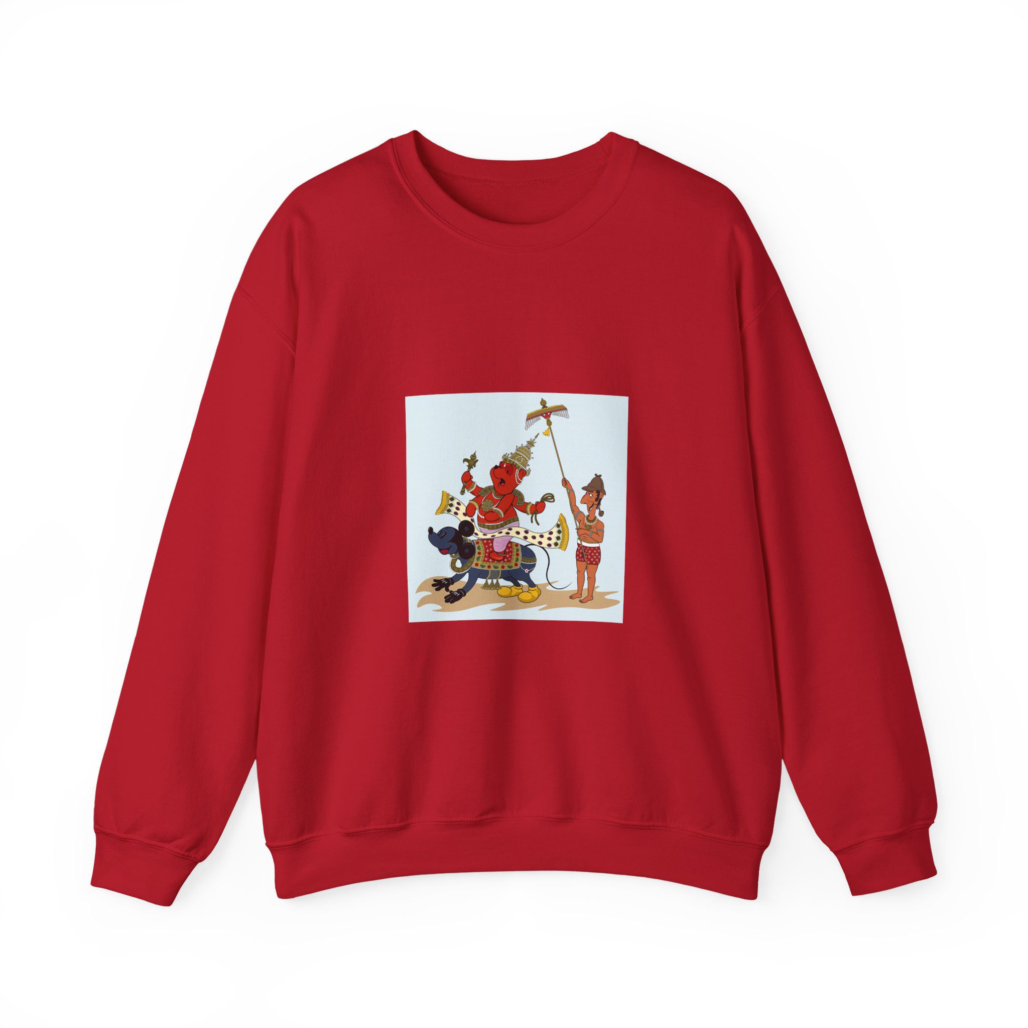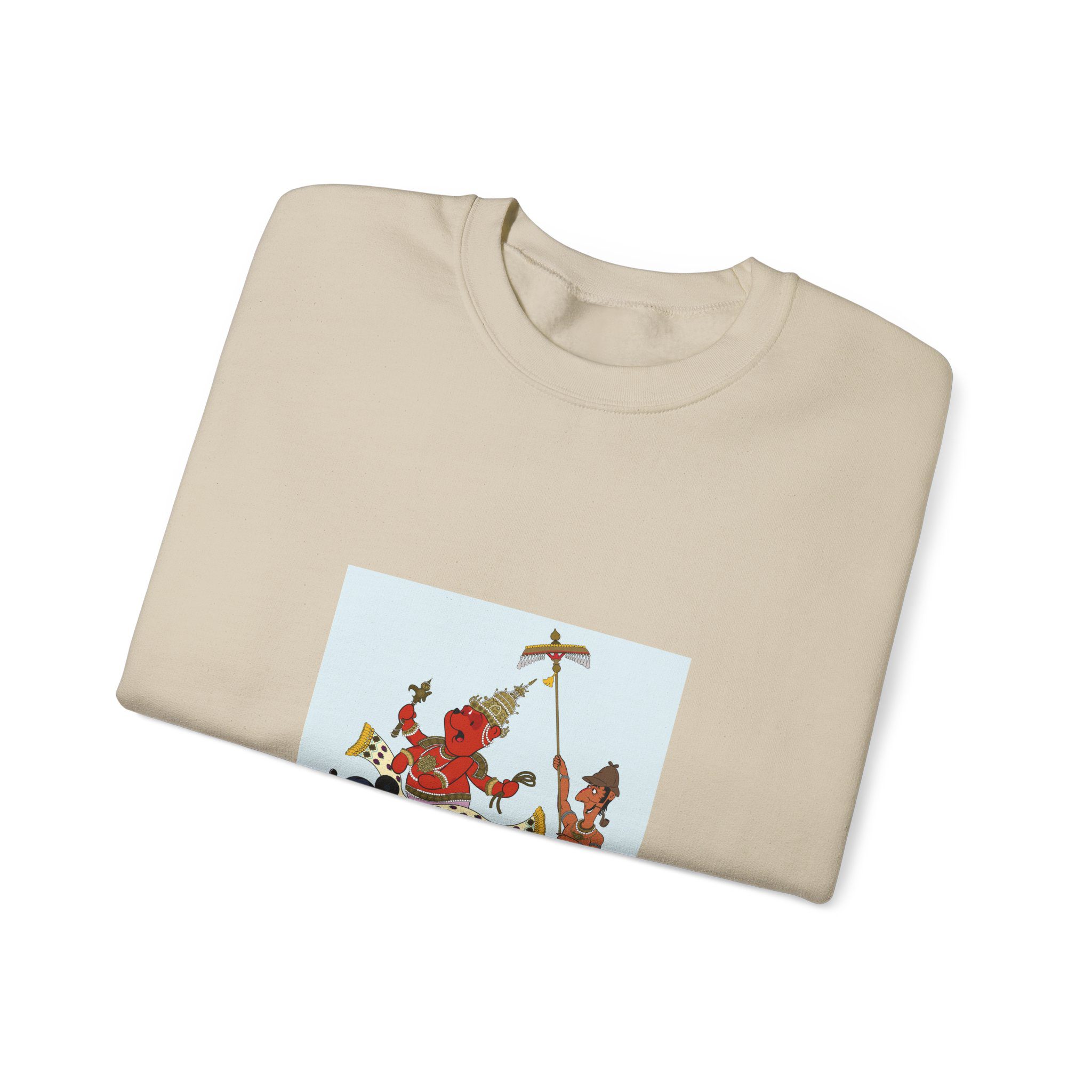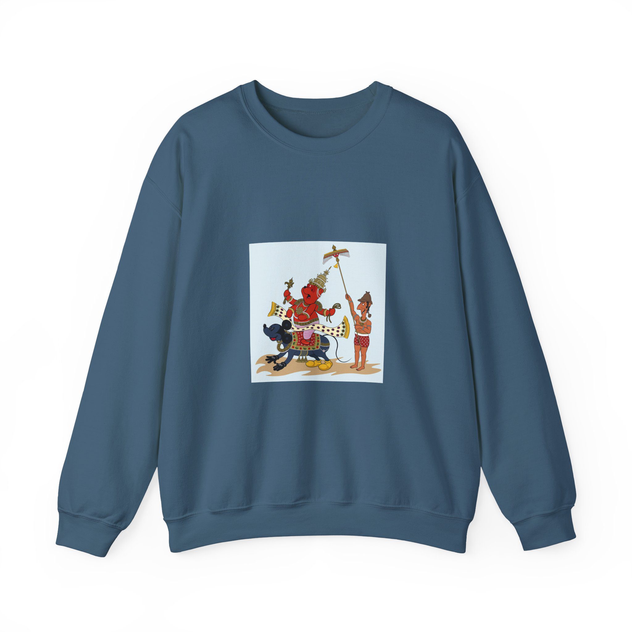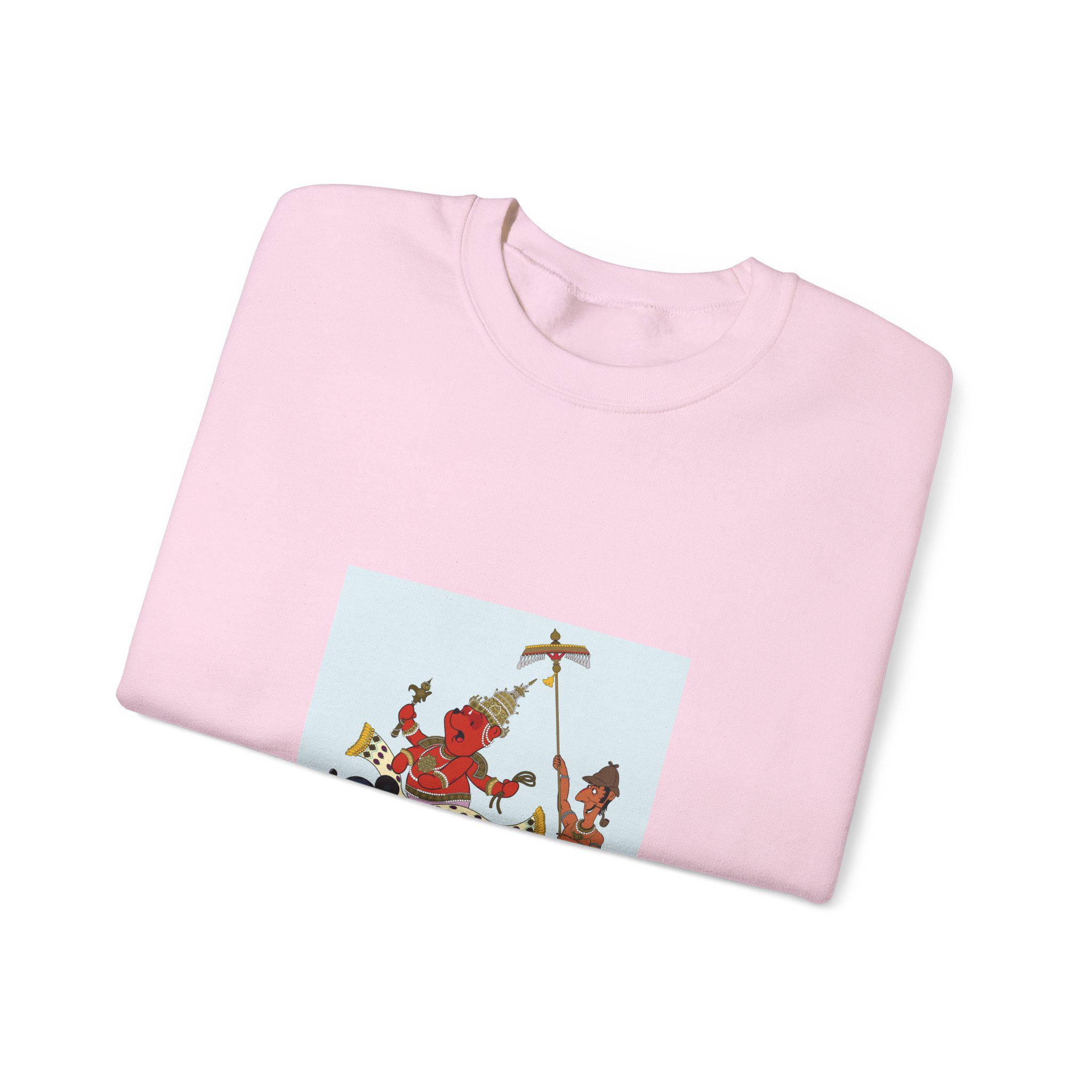 Sacred style meets pop absurdity in Winnesha Moonveil, a dazzling collision of Eastern divinity and Western animation. Dressed in divine red and dripping with gold and pearls, a celestial Winnie rides a four-legged Mickey steed beneath the watchful shade of Sherlock. It’s myth, glam, and mischief rolled into one radiant spectacle.