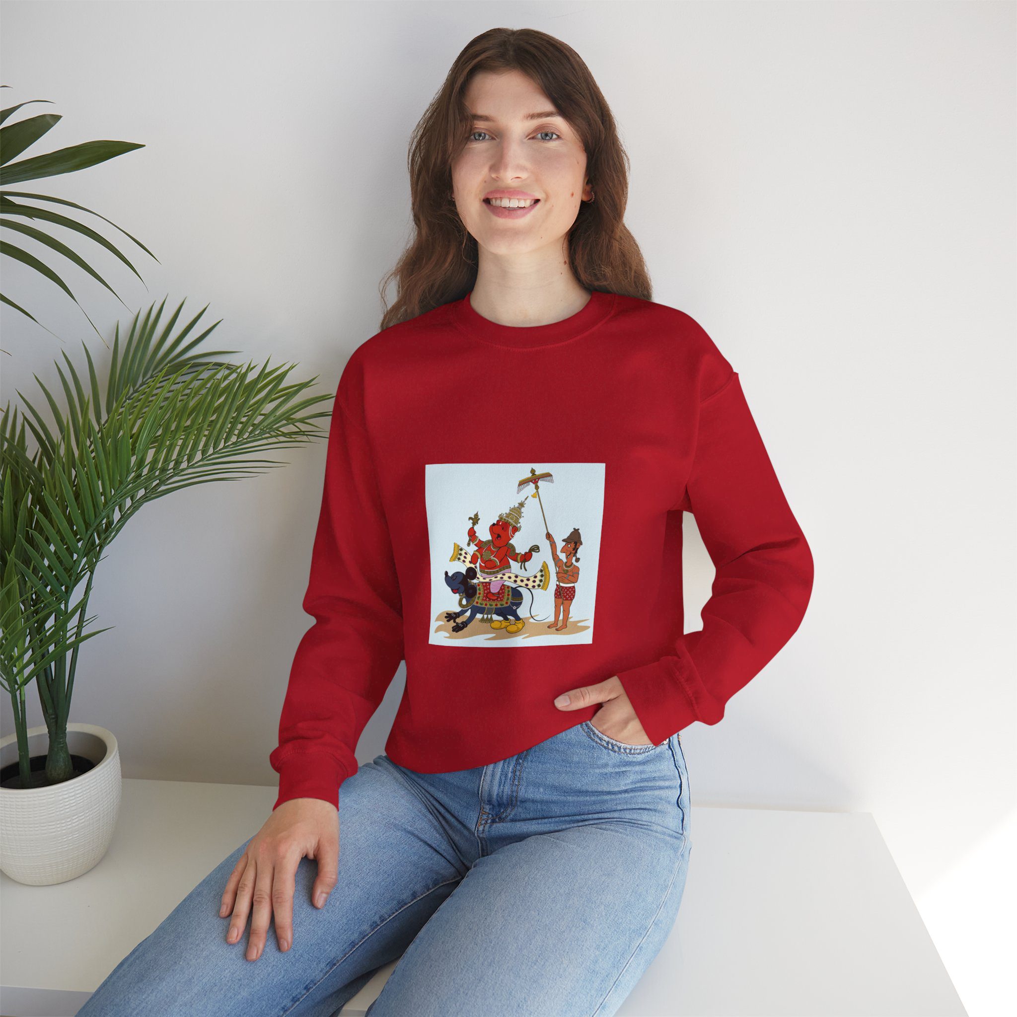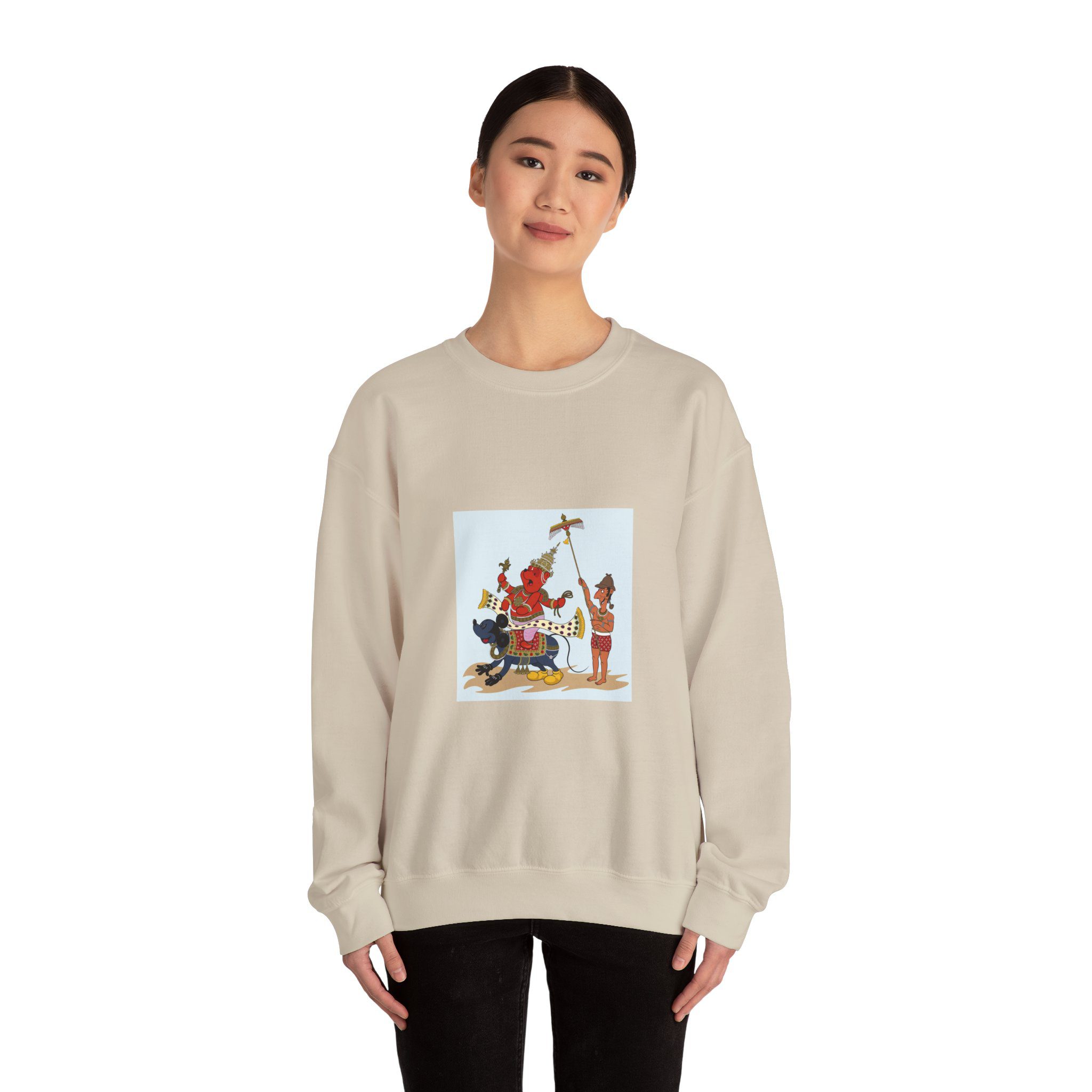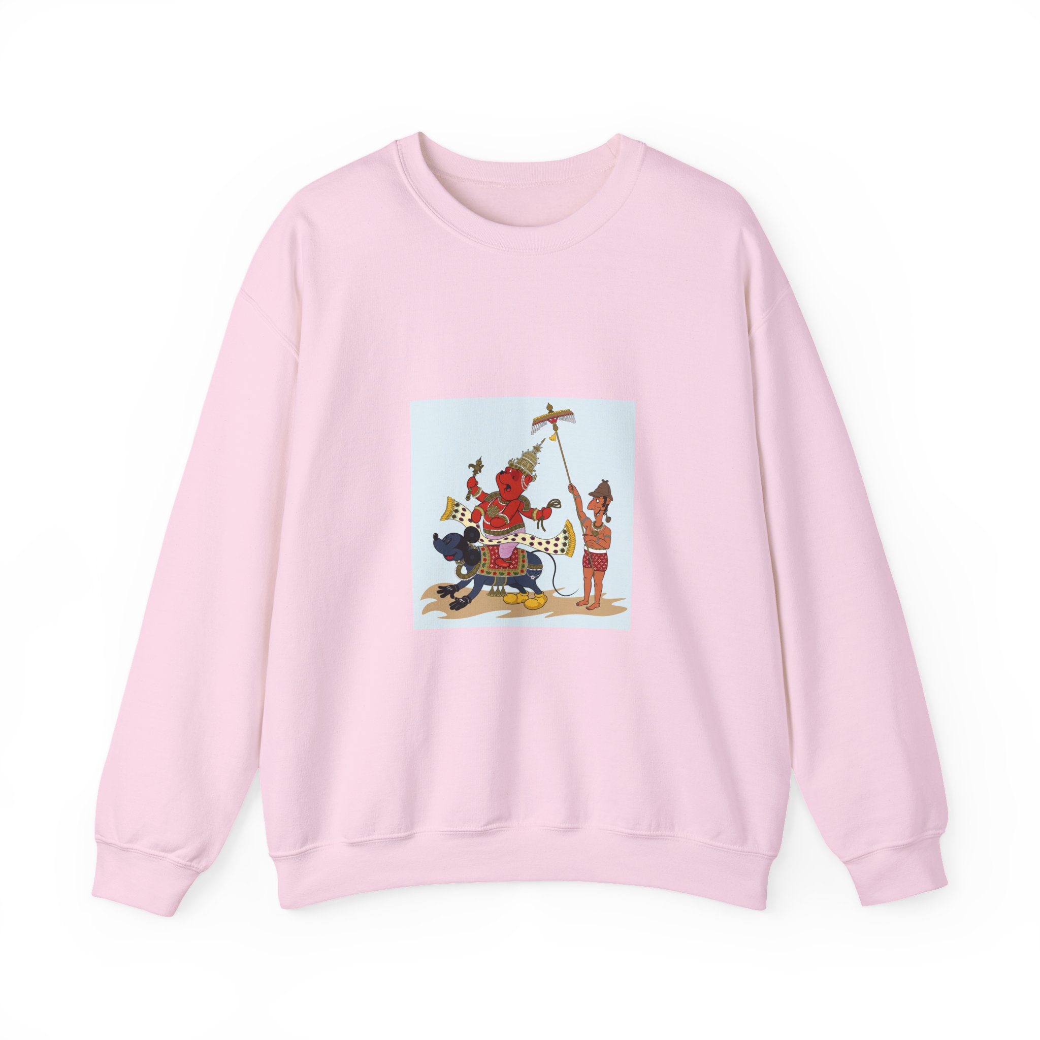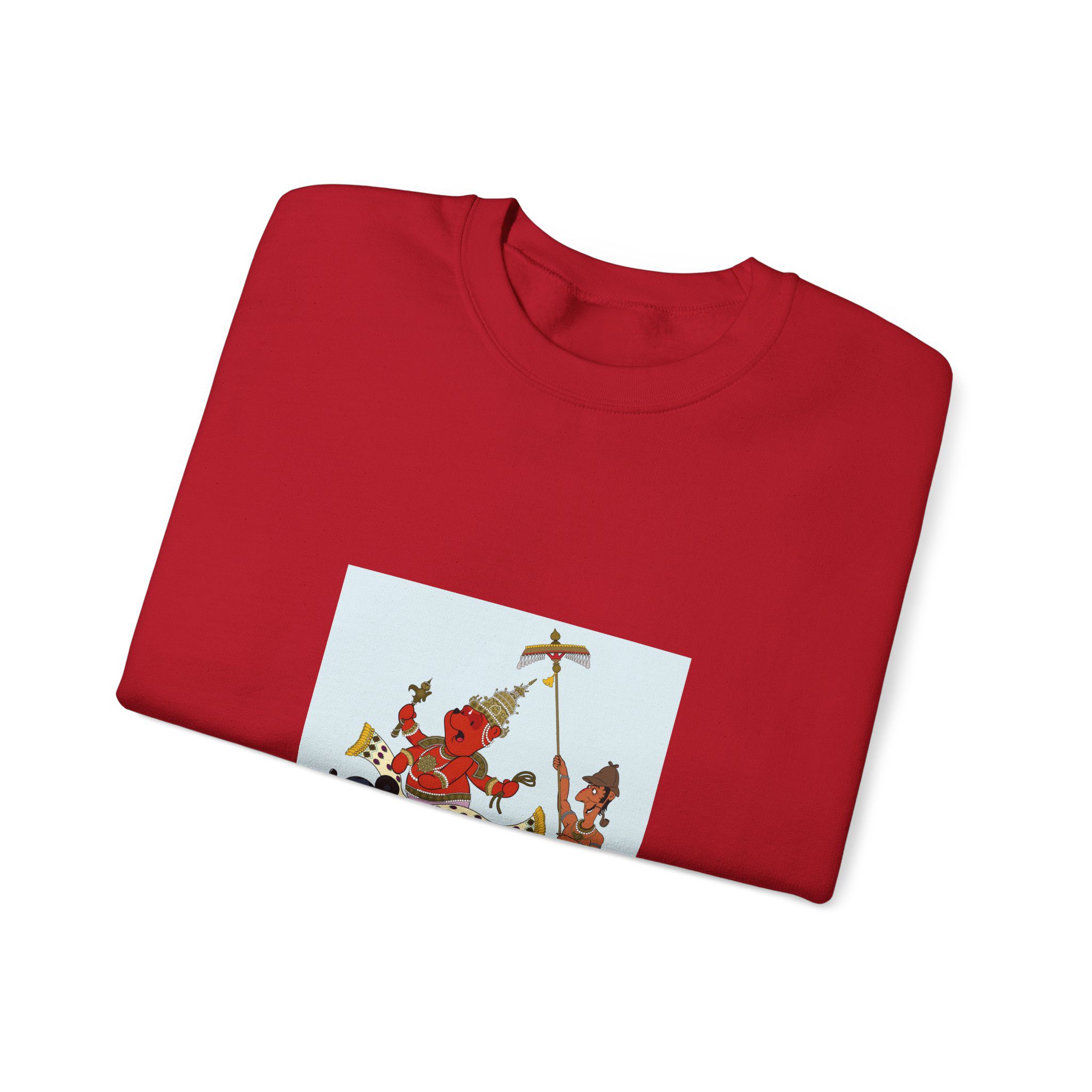 Sacred style meets pop absurdity in Winnesha Moonveil, a dazzling collision of Eastern divinity and Western animation. Dressed in divine red and dripping with gold and pearls, a celestial Winnie rides a four-legged Mickey steed beneath the watchful shade of Sherlock. It’s myth, glam, and mischief rolled into one radiant spectacle.