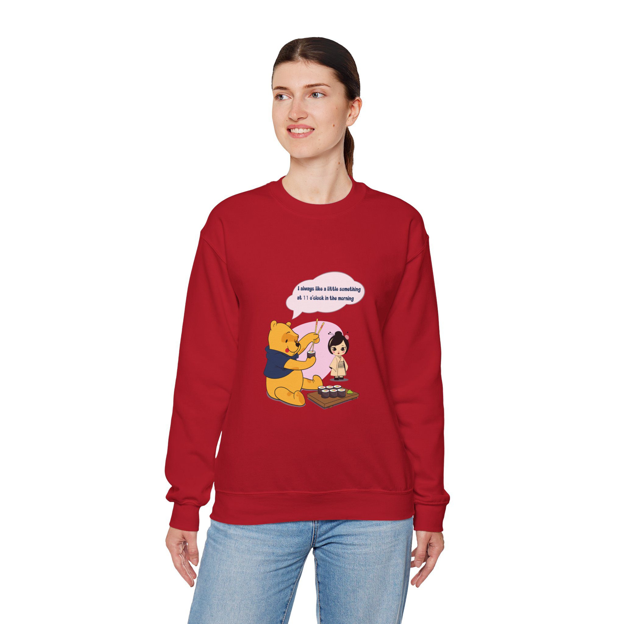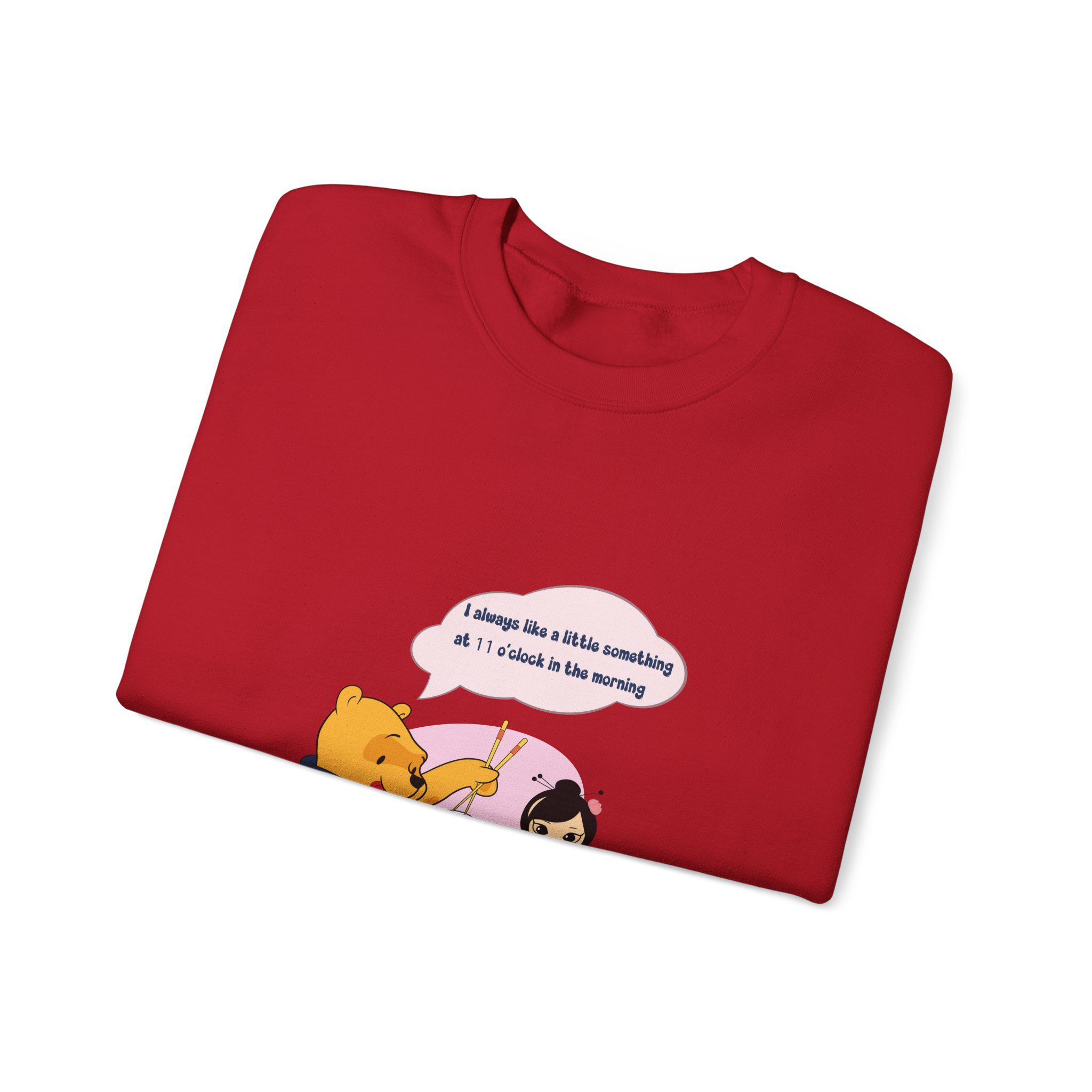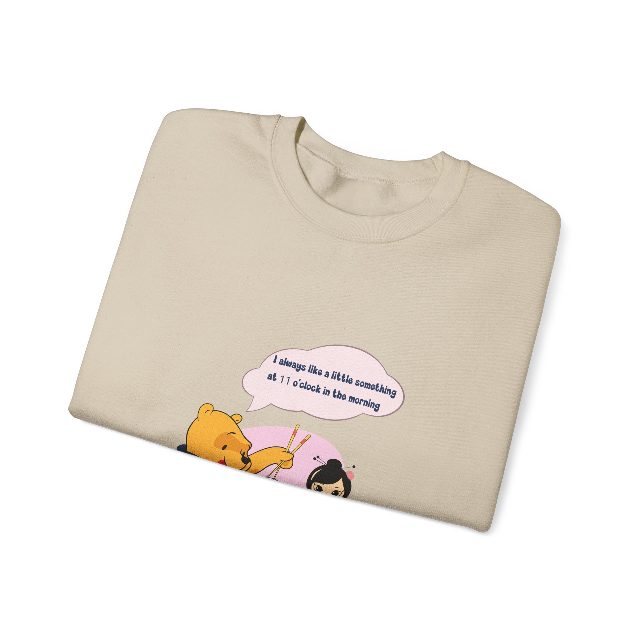 This Winnie’s Sushi Moment Sweatshirt serves up the perfect mix of humor, culture, and mealtime charm. Sitting gracefully with chopsticks in hand beside a geisha friend, Winnie savors his sushi right on schedule — 11 a.m. sharp. A delightful pick for food lovers, Japan enthusiasts, and anyone who enjoys art with a playful, story-driven twist.